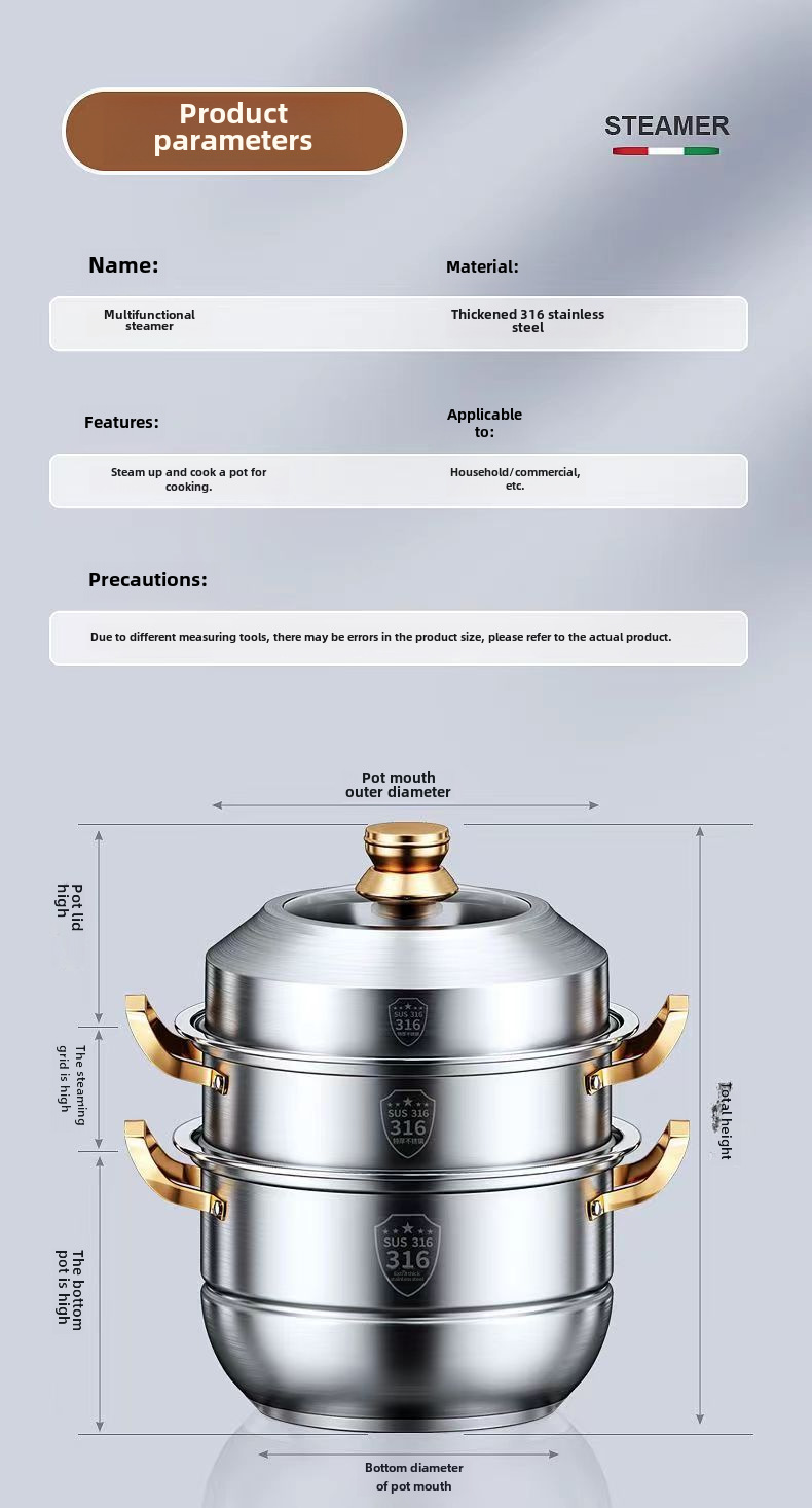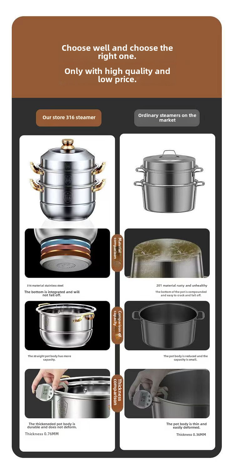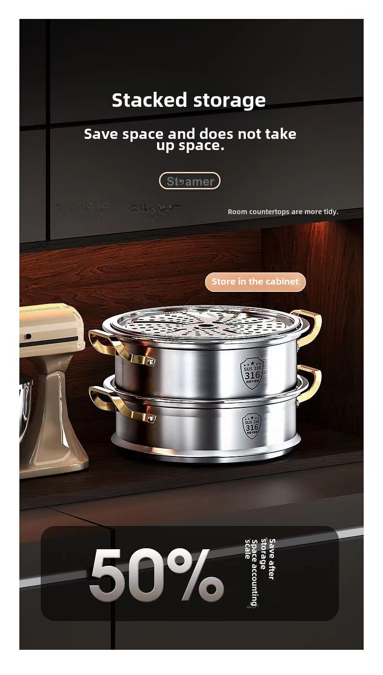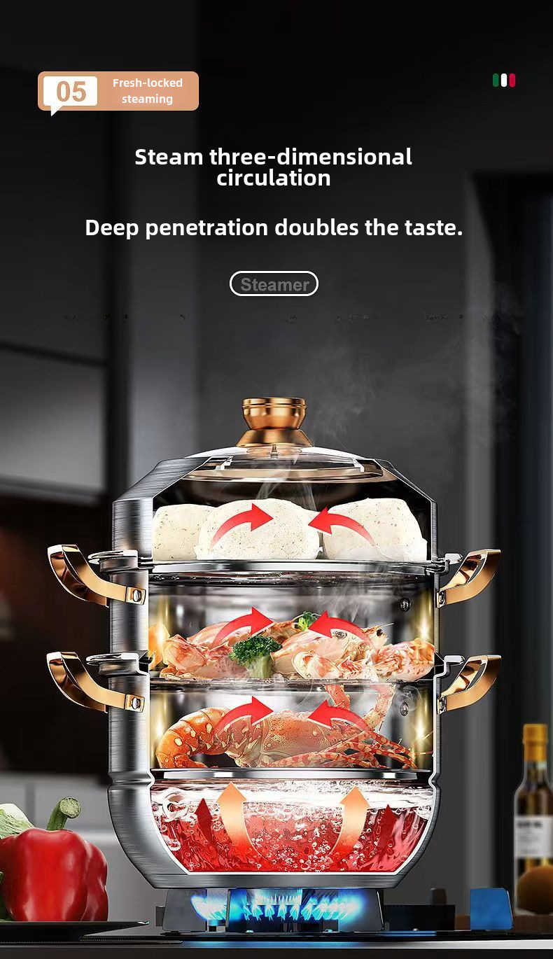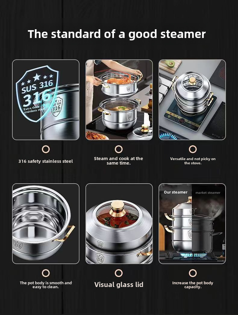- Thermal Efficiency: The multi-layer design enhances thermal efficiency, perfect for steaming food quickly and evenly.
