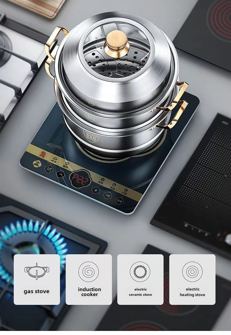 Пароварка из нержавеющей стали 316, пищевая 304, утолщенная, кастрюля для супа, паровые булочки, двойной слой, три или четыре слоя, универсальная индукционная плита
