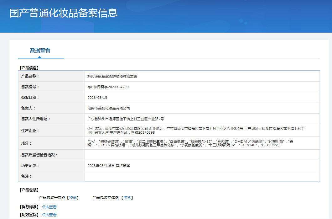 Номер сертификата регистрации несpecial косметики Guangdong g makeup network preparation number 2022165064