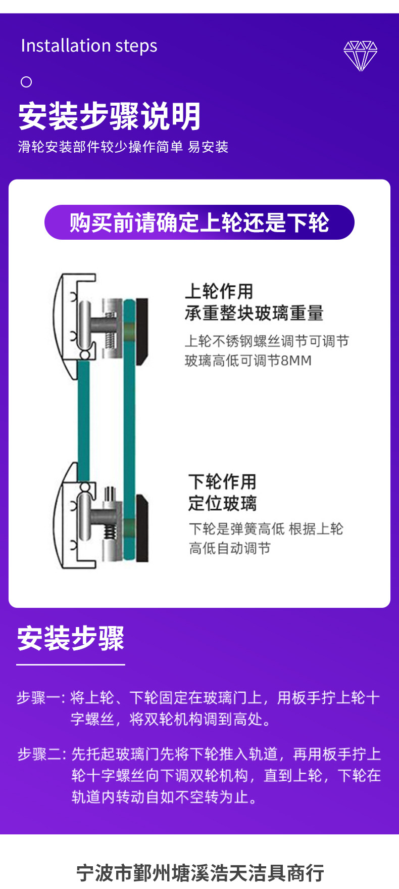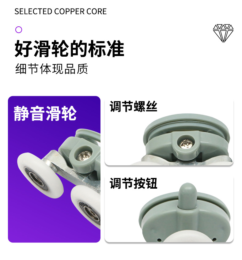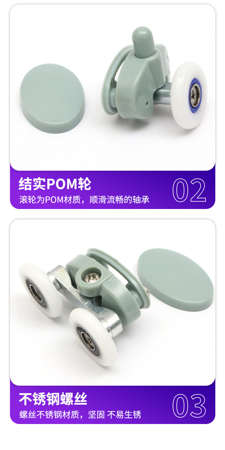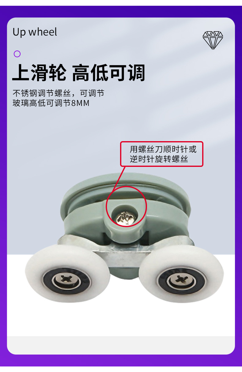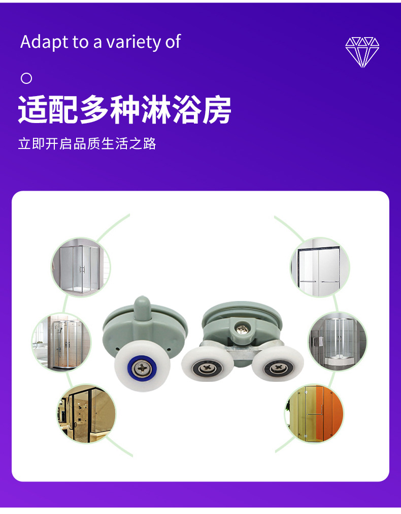 | 产品名称:推拉门尼龙滑轮 | 适用范围:各种淋浴房 |