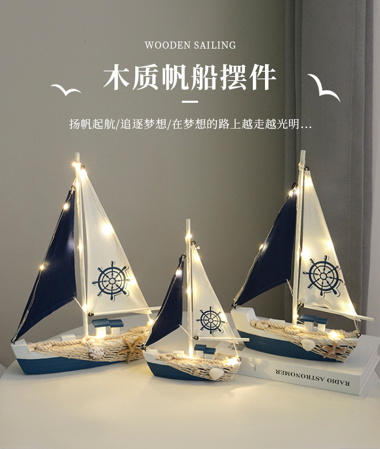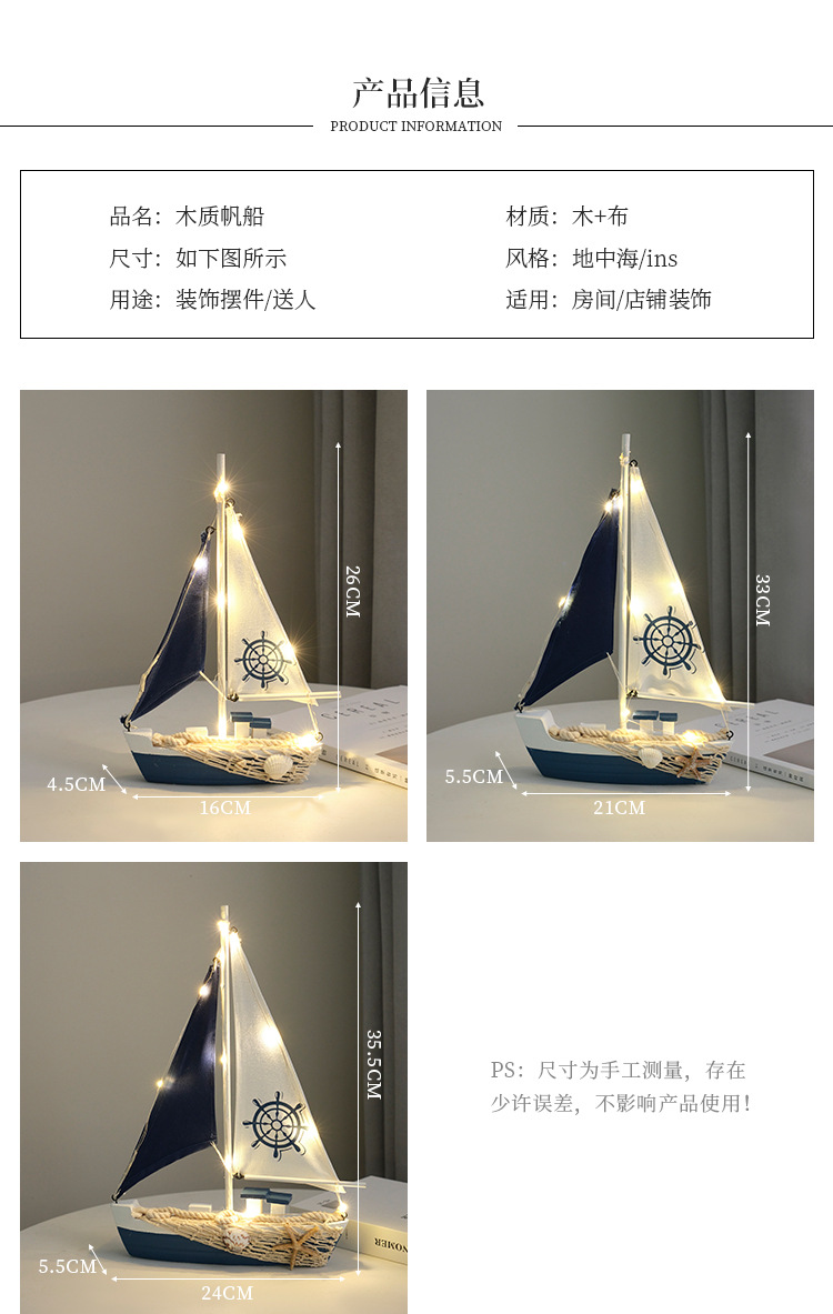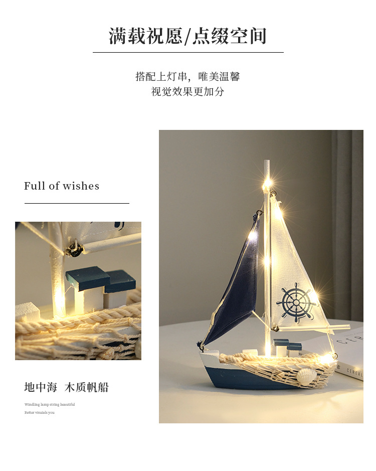 Модель деревянного парусника в средиземноморском стиле для домашнего декора, маленькие украшения, ручная работа