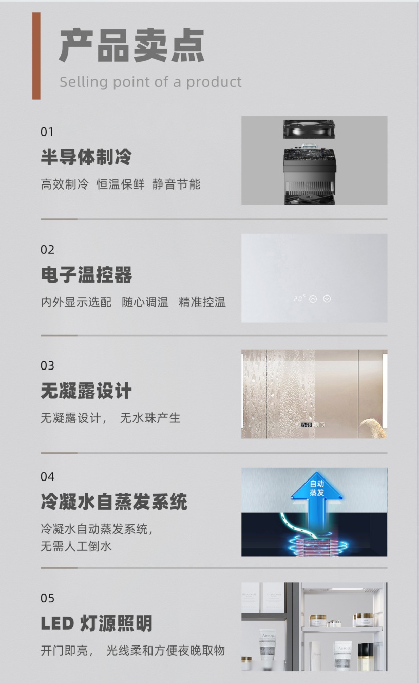 Холодильник Odaxin для ванной с зеркалом, встроенный, с задним хранением, для хранения косметики