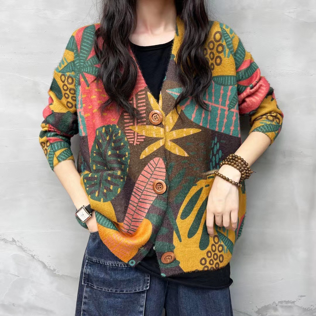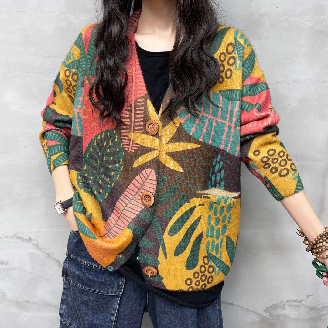Вязаный свитер с этническим принтом, новый осень-зима 2025, кардиган из норкового велюра