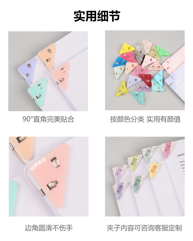 Боковой угловой зажим, треугольный зажим, зажим для тестовых бумаг, материал для связывания файлов, зажим для билетов, пластиковый зажим для хранения, держатель для ручных записей