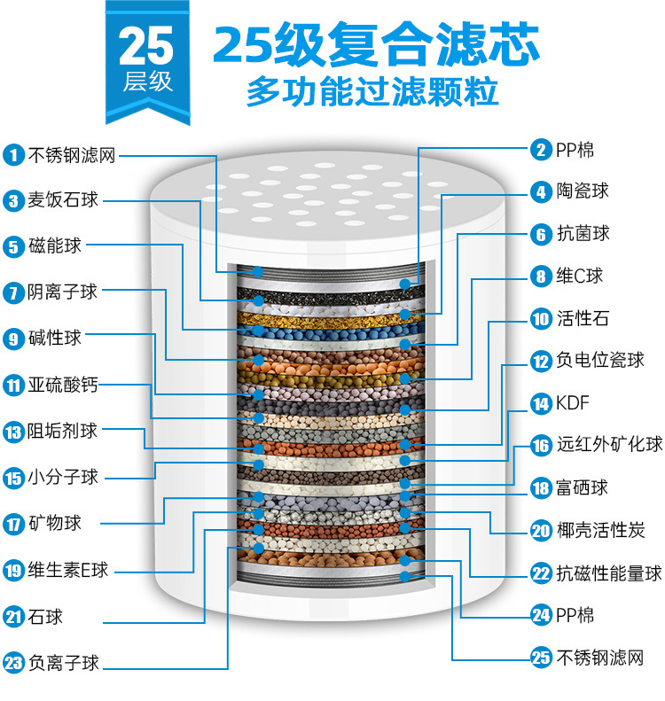 Фильтр для душа с 10-20 слоями, удаление хлора