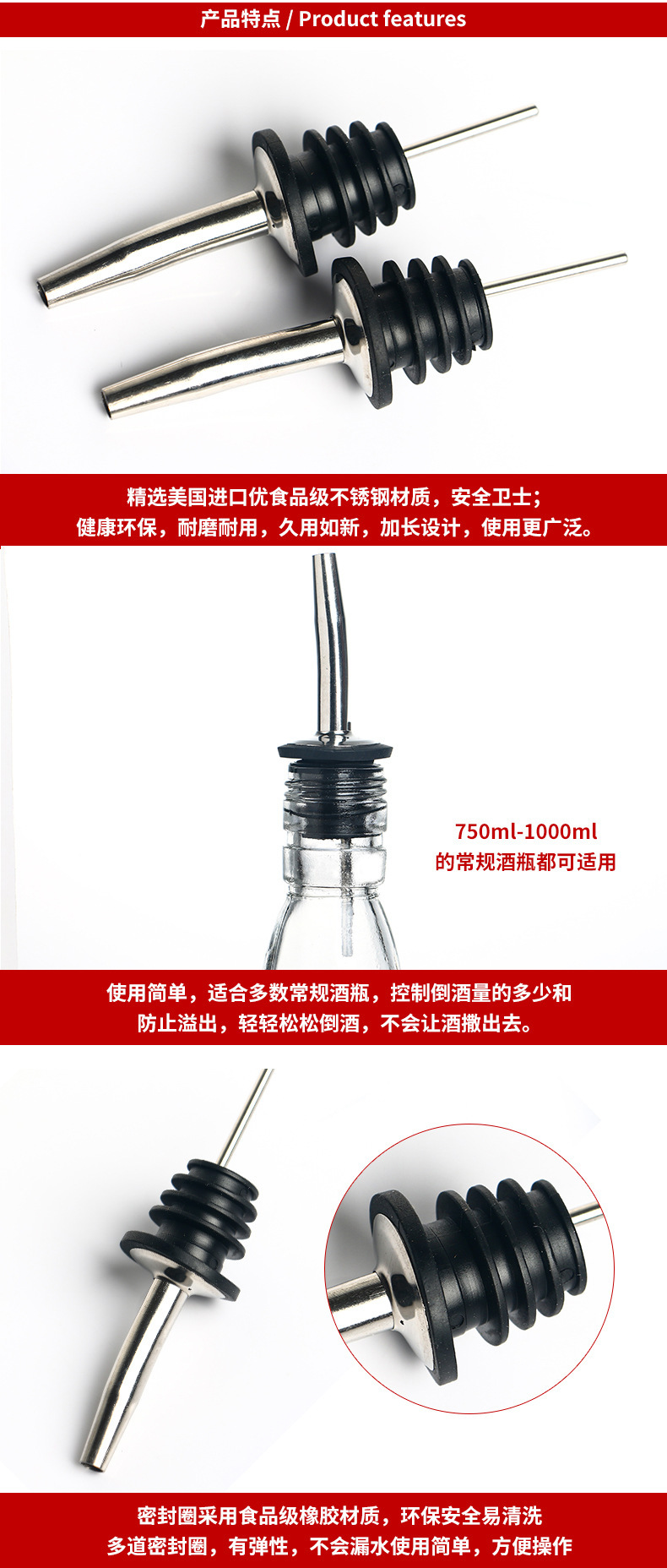 Носик из нержавеющей стали Fcm с пробкой для красного вина, маленькая черная крышка, наливатель для красного вина с крышкой, пробка для бутылки вина