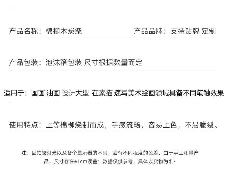 📦 | Black | Cotton willow charcoal strips in bulk (2.0 cm-2.4cm) each | ¥2.98 / ≈ 36 ₽ | 0 | 5615528448444 | |