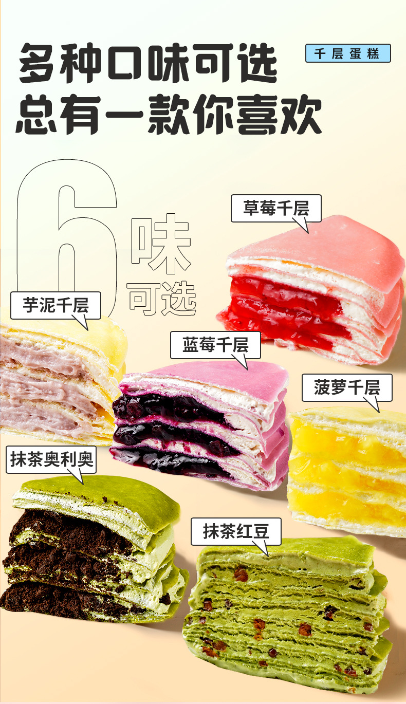 📦 | [sf/jd] 6 pieces of thousand layers (durian + blueberry + hazelnut + matcha honey bean + yellow peach + taro paste) | ¥29.25 / ≈ 356 ₽ | 296 | 5932078072275 | |