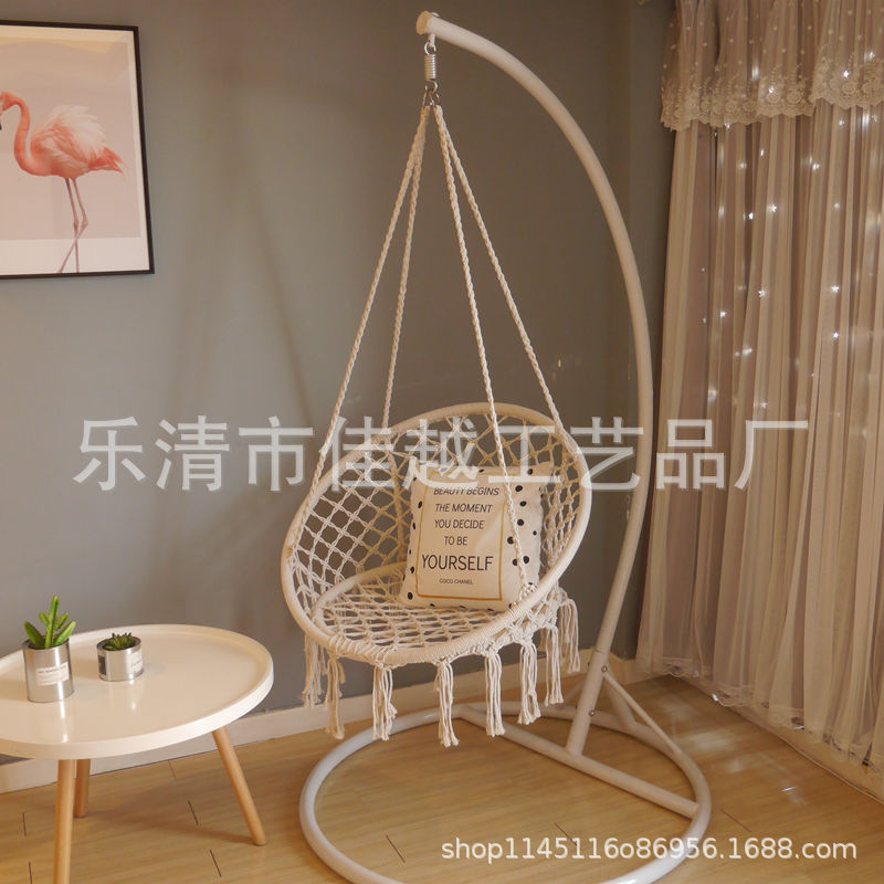 Кресло-качели в скандинавском стиле из хлопкового каната, плетеная корзина с кисточками для улицы, ленивое кресло, фабричный Outlet