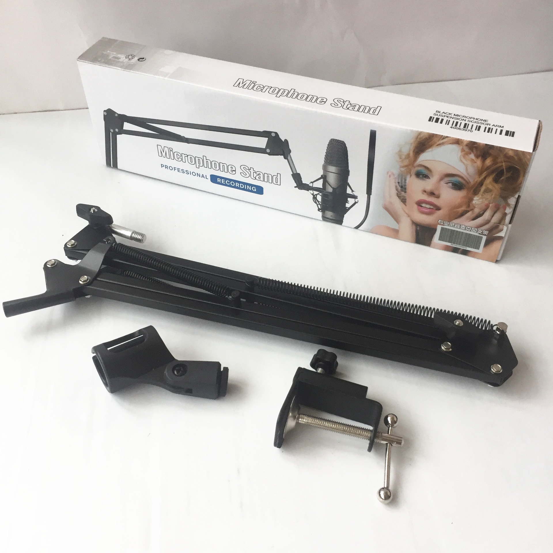 Список упаковки Color box, microphone bracket, microphone clip, base clip