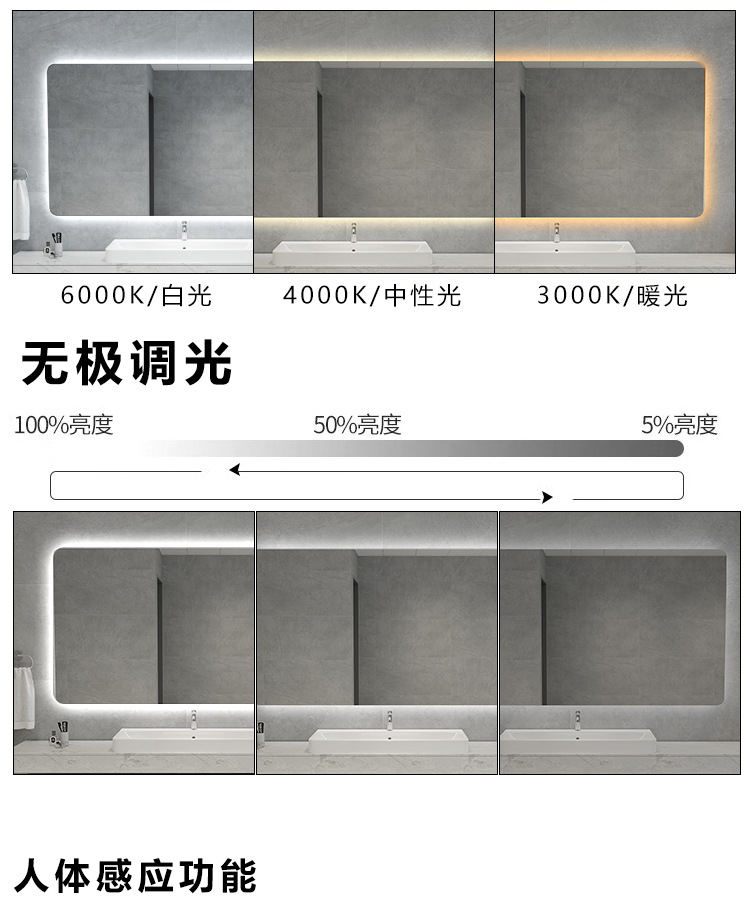 ![]() | Horizontal backlight + double touch + three-color light + defogging + time temperature | 80cm*130cm | ¥356.5 / ≈ 4 307 ₽ | 9996 | 5093380621277 | |