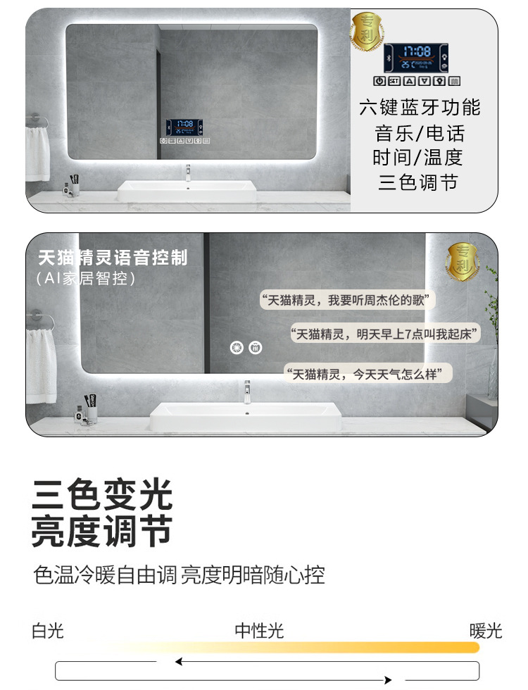![]() | Horizontal backlight + Tmall Genie Intelligent Control + Bluetooth + defogging + three-color switching dimming | 60cm*80cm | ¥508.2 / ≈ 6 140 ₽ | 9999 | 5093380621289 | |