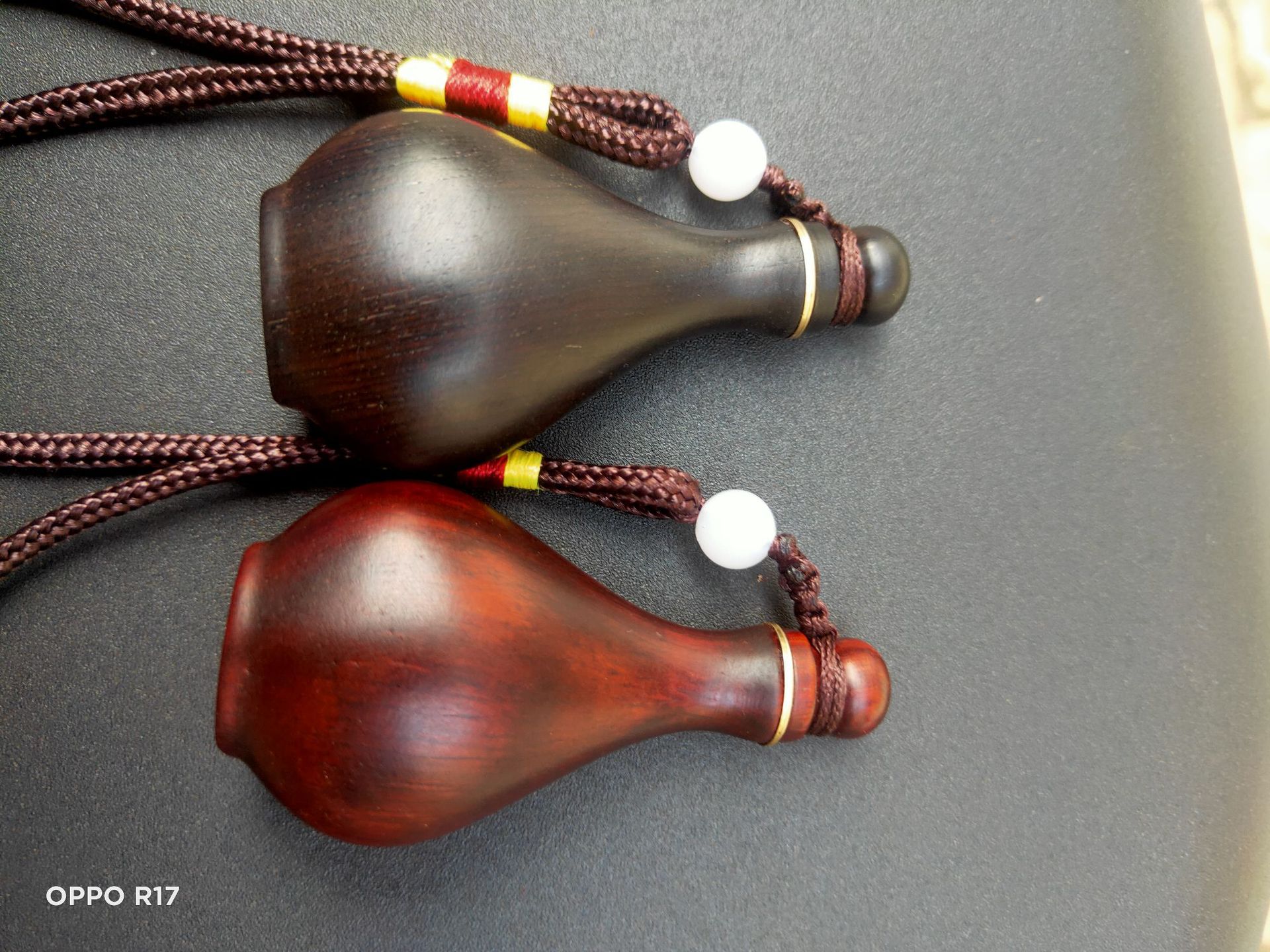 材质:黑色乌木紫光檀,红色:犀牛角紫檀
