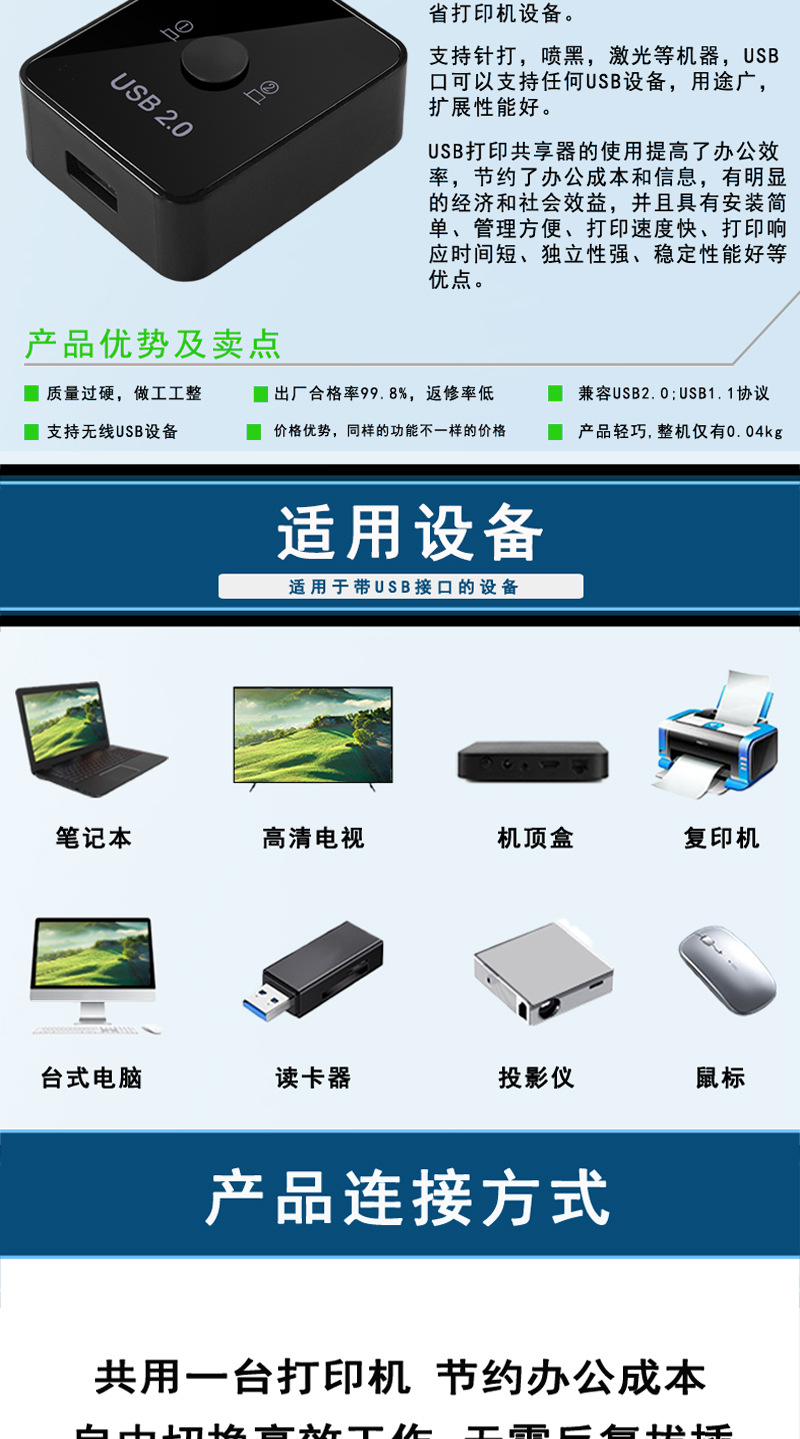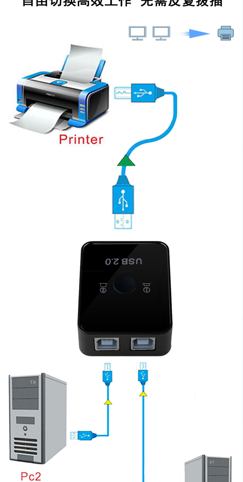 uSB принтерный делитель автоматический без сетевого переключения сплиттер один-ко-два конвертер компьютер uSB флеш-накопитель сплиттер