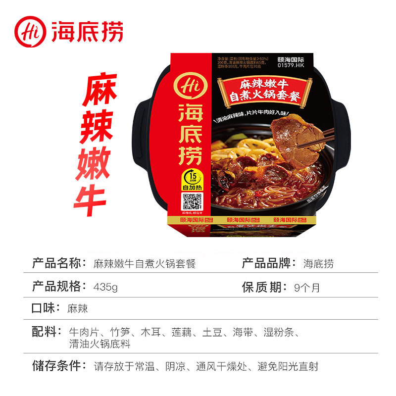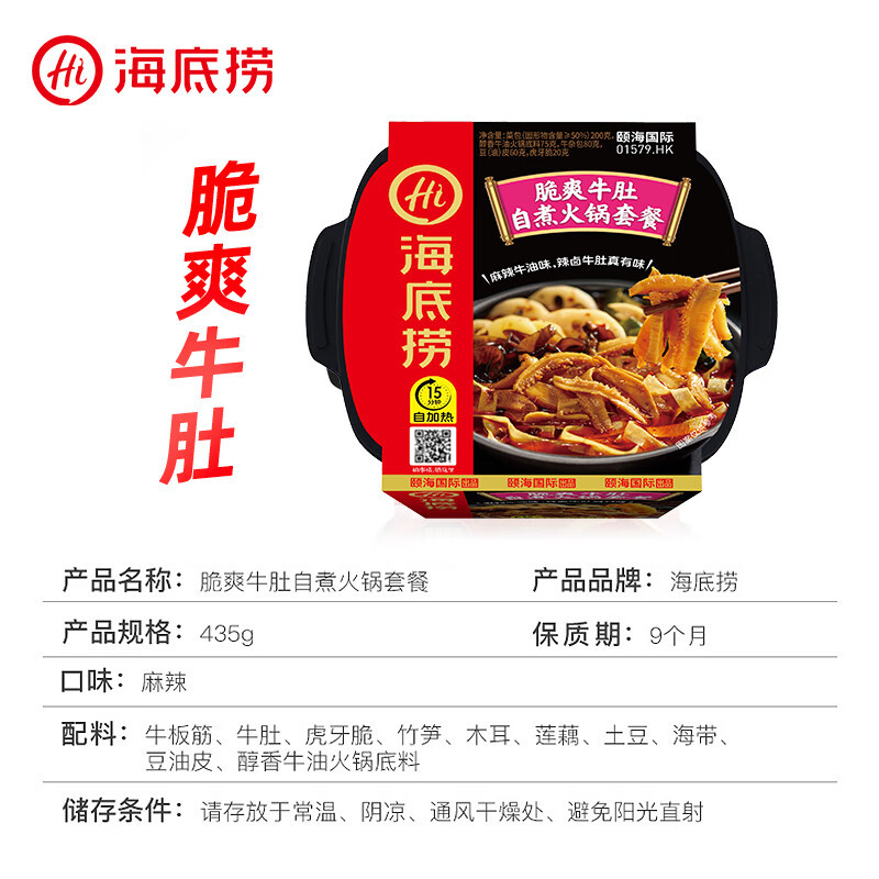 ![]() | Haidilao [crispy beef belly] self-cooking hot pot 435g (single box) | ¥23.39 / ≈ 283 ₽ | 852 | 5090803660794 | |