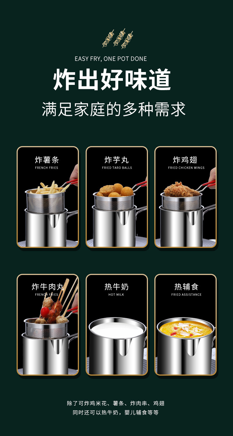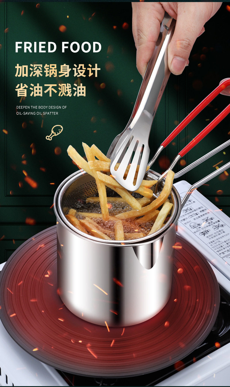 Мини-фритюрница Zhijiu, глубокая кастрюля из нержавеющей стали 304, кастрюля для добавления пищи с ситом, экономия масла, маленькая фритюрница