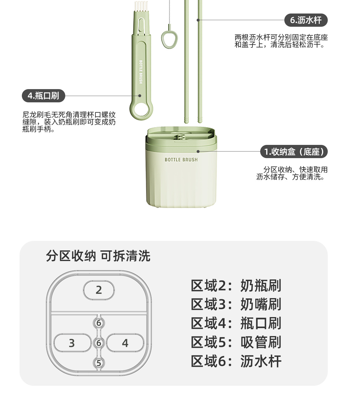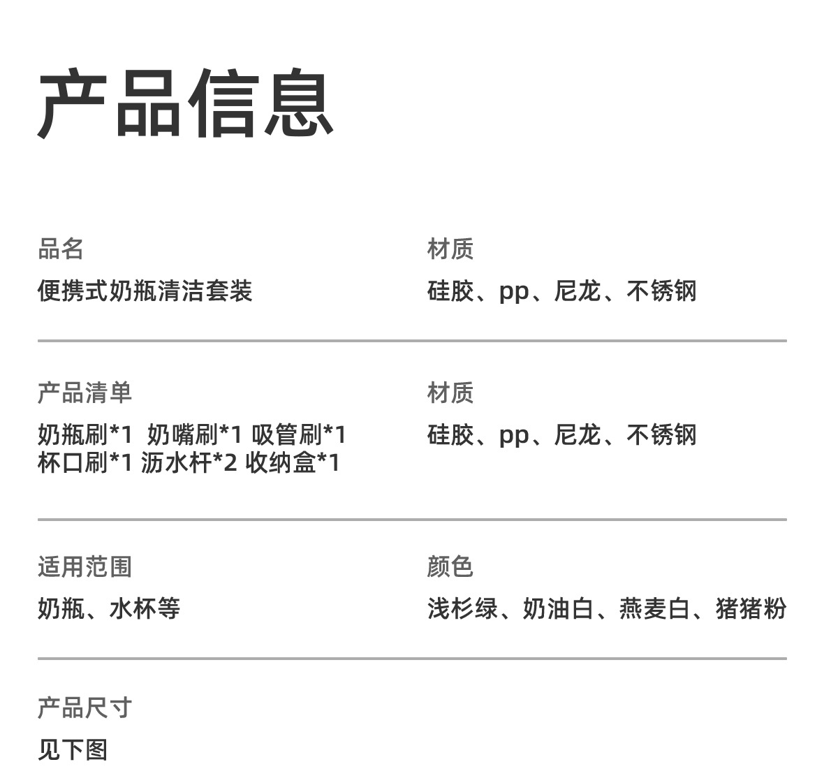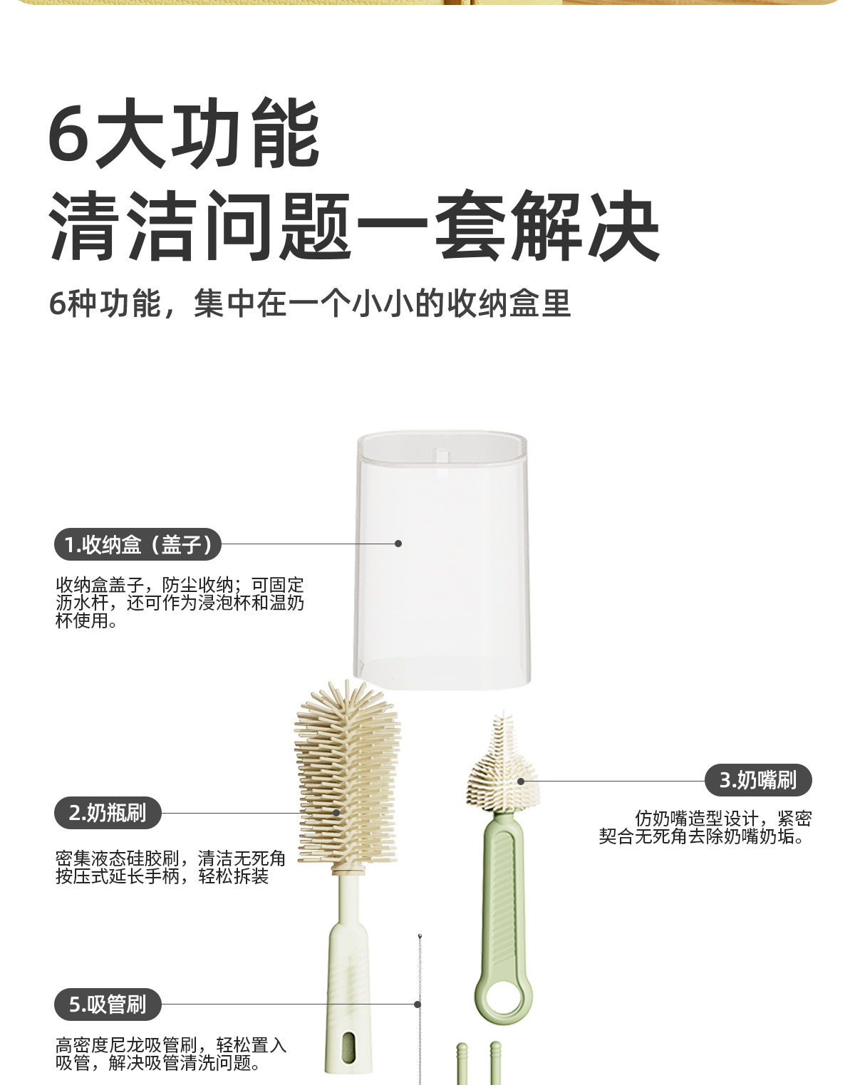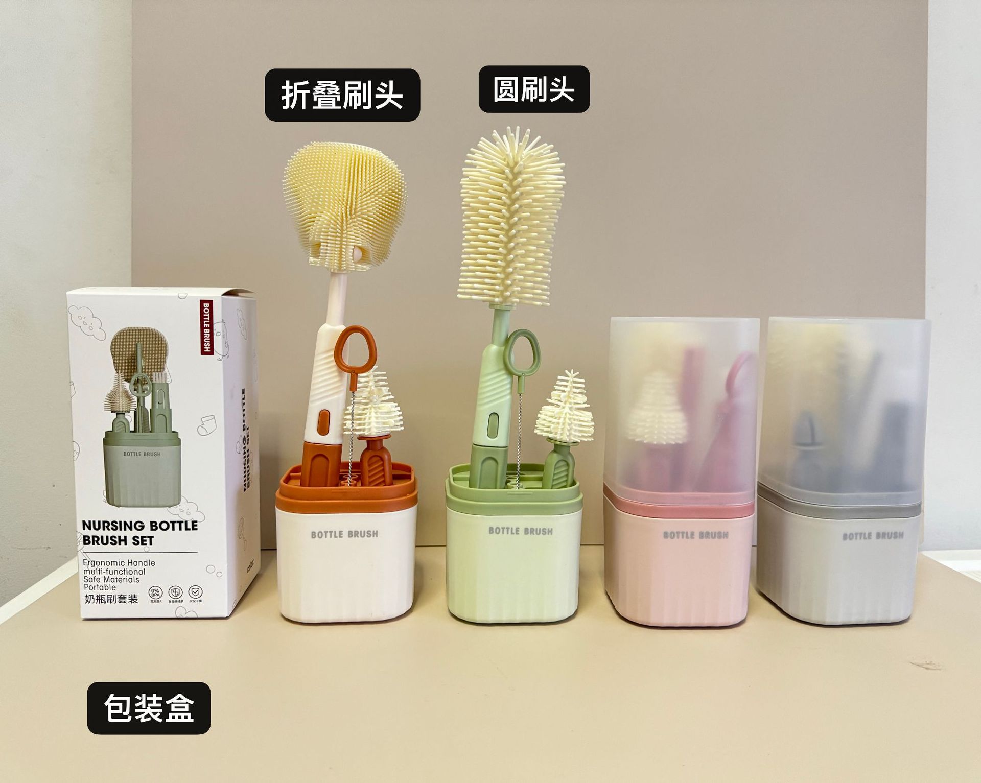 Кросс-бордерный силиконовый набор для мытья бутылок, портативная щетка для сосок, подставка для слива, щетка для трубочек, щетка для зазоров