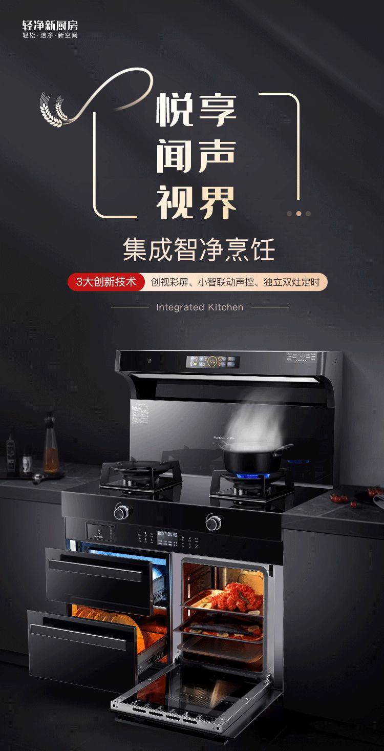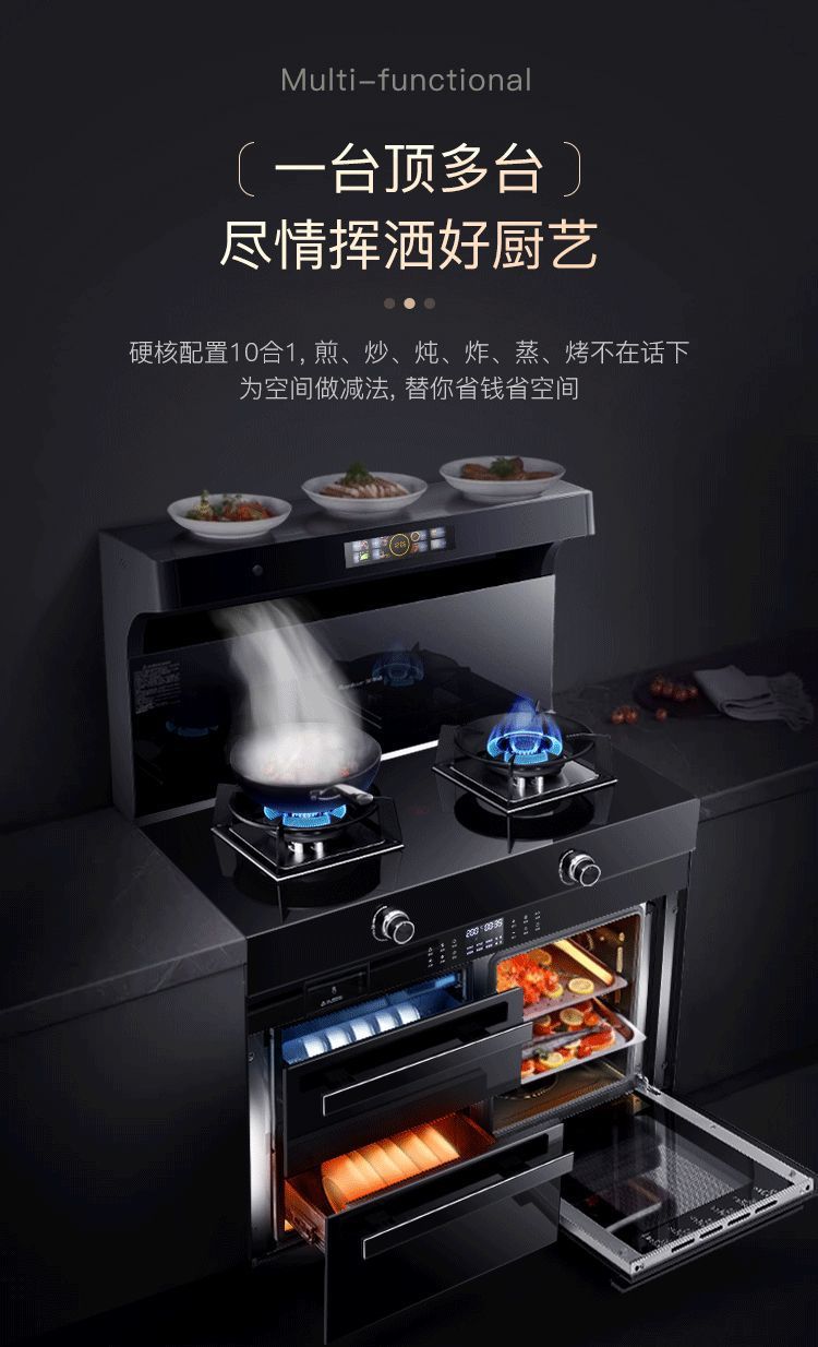 Интегрированная плита для домашнего использования, многофункциональная кухонная плита с частотным дезинфекционным шкафом, экологичная вытяжка с боковым всасыванием, паровая печь и энергоэффективная плита