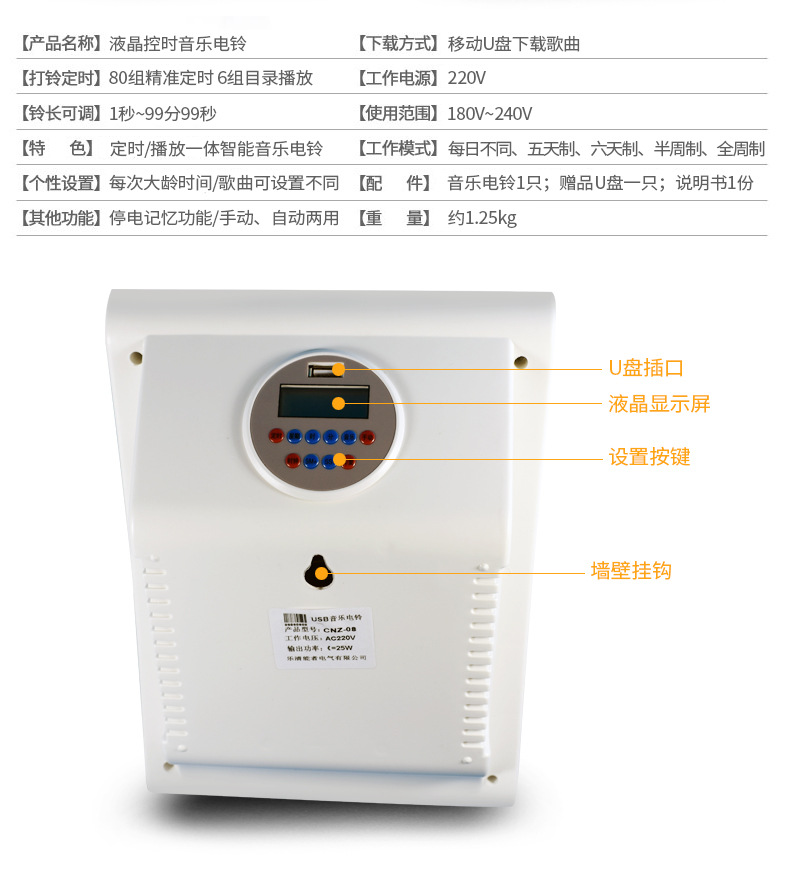 Беспроводной музыкальный звонок Bluetooth для мобильного телефона 220V, школьный класс и производственный звонок с дистанционным управлением и таймером
