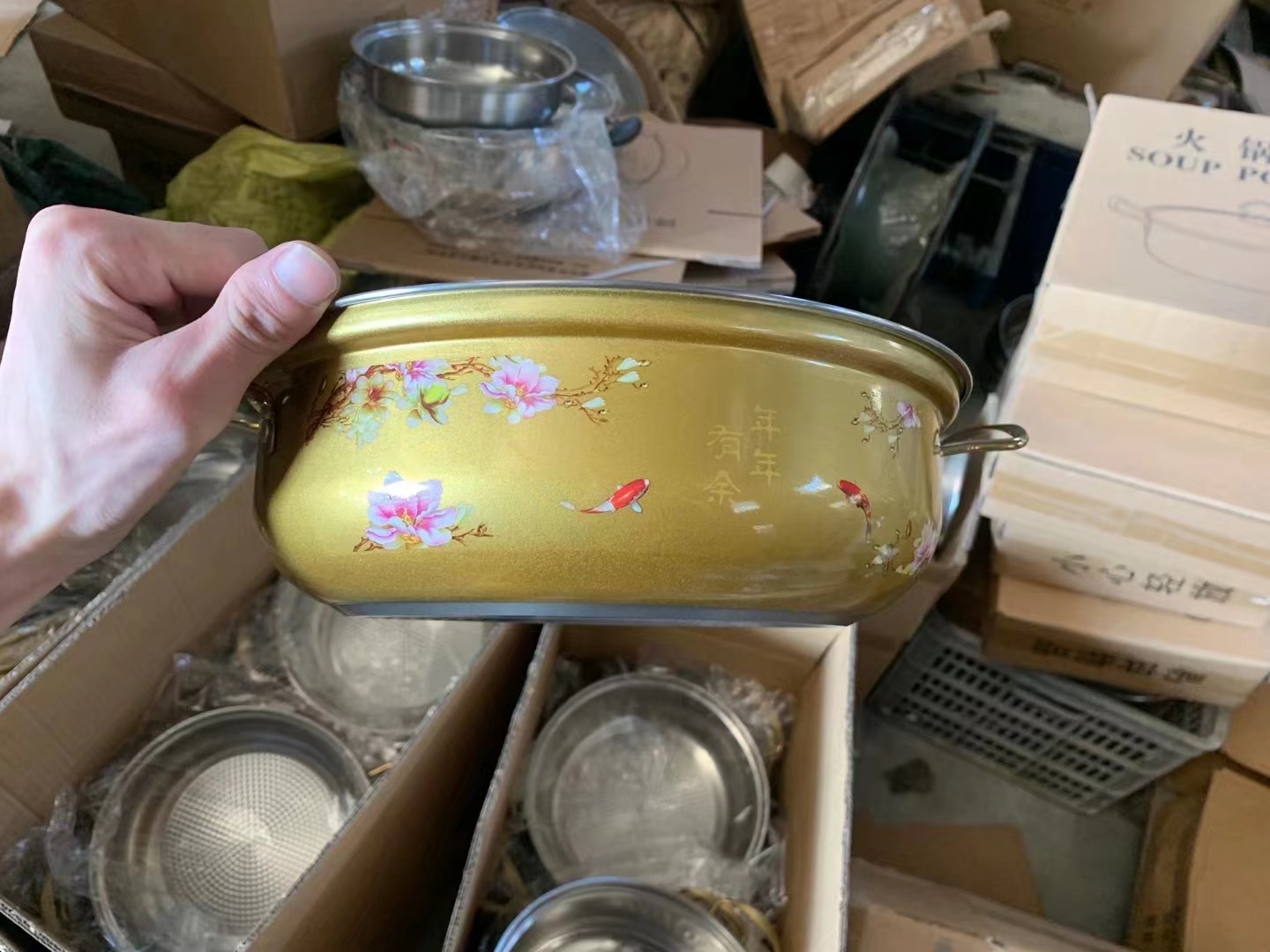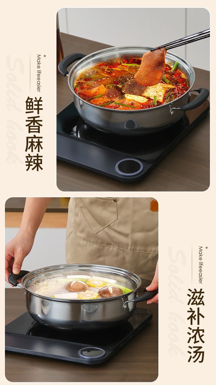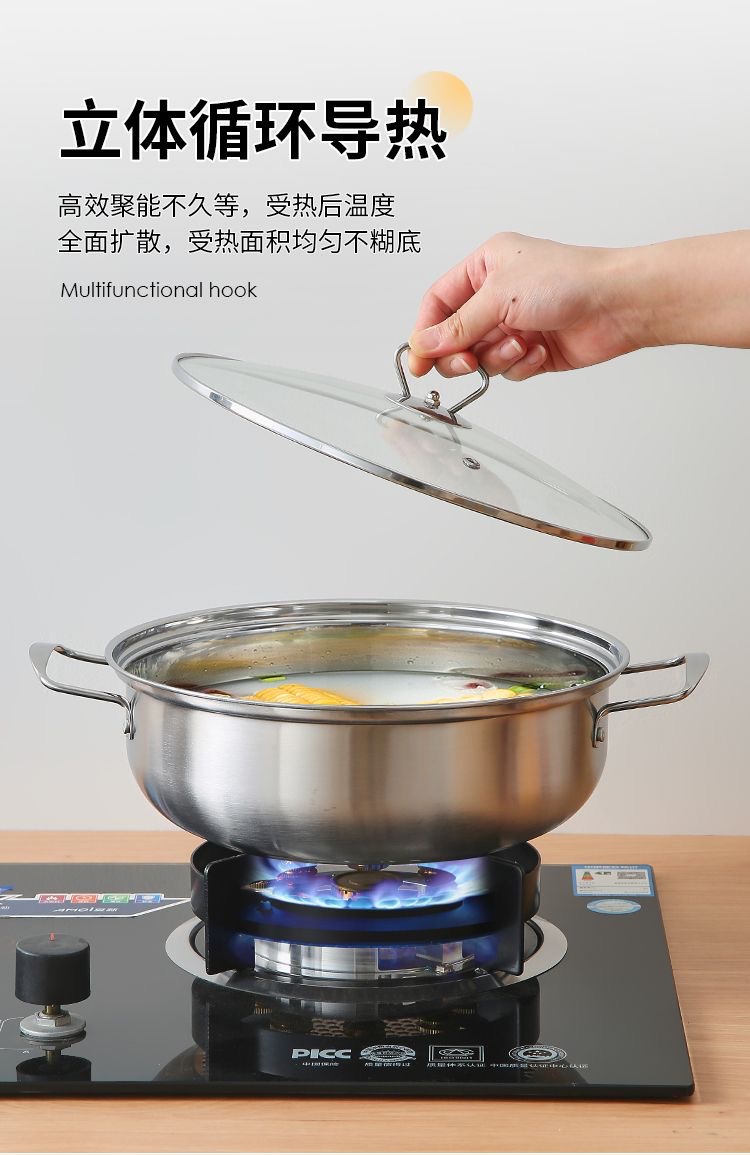 Оптовая продажа толстостенной кастрюли для супа из нержавеющей стали, большой горячий горшок, с горшком для супа Будды