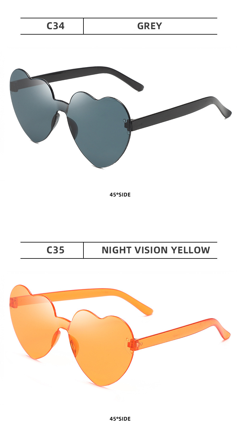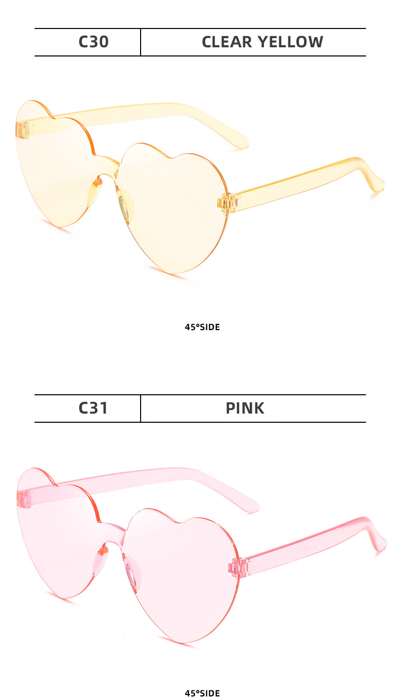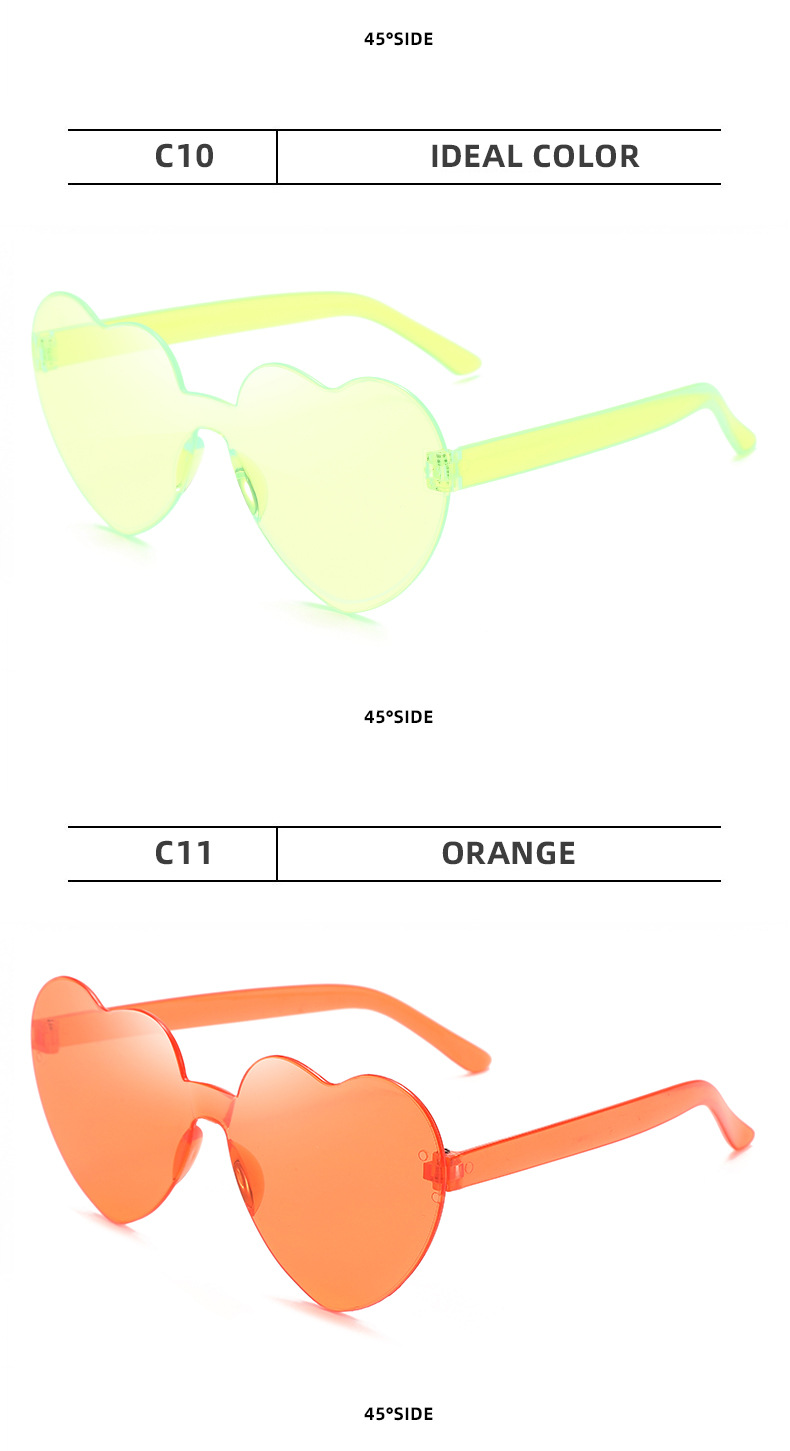 2817 персиковые сердечные очки, сердечные очки, безободковые очки в форме сердца, очки ярких цветов