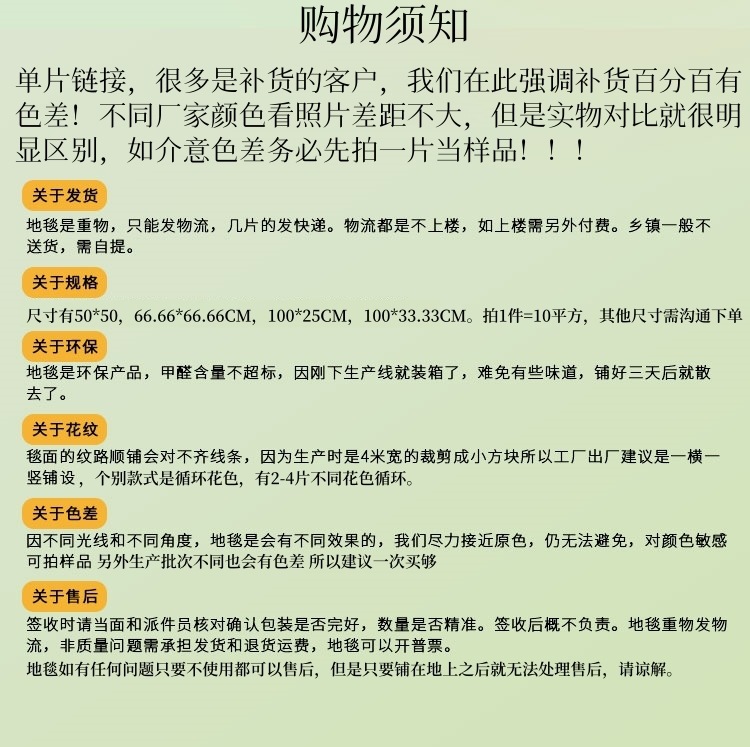 ![]() | Light gradient | Wear-resistant pvc bottom piece (4 pieces per square meter) | ¥8.5 / ≈ 103 ₽ | 99670 | 6112518923784 | |