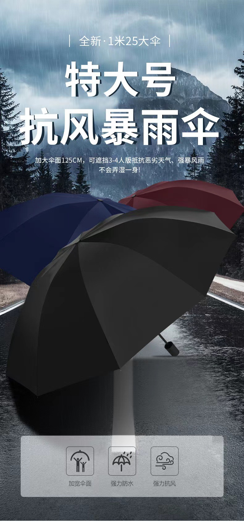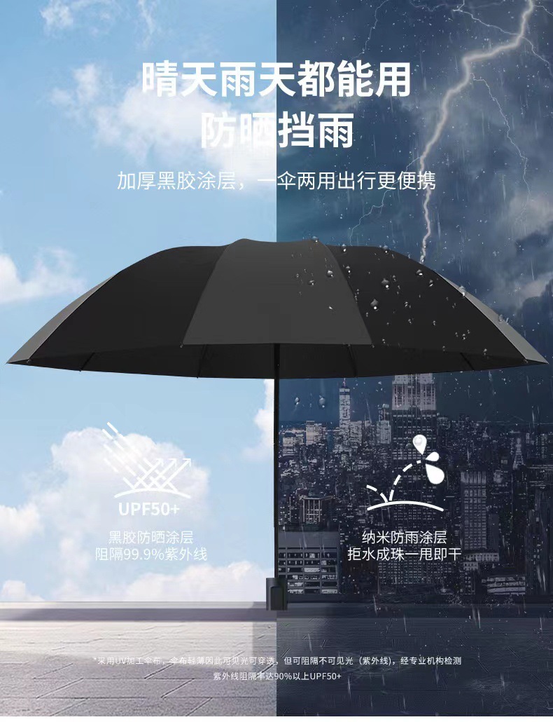 Зонт с 10 спицами, черный, с клеевым краем, плюс-сайз, тройной, для солнца и дождя, бизнес-печать логотипа, рекламный зонт