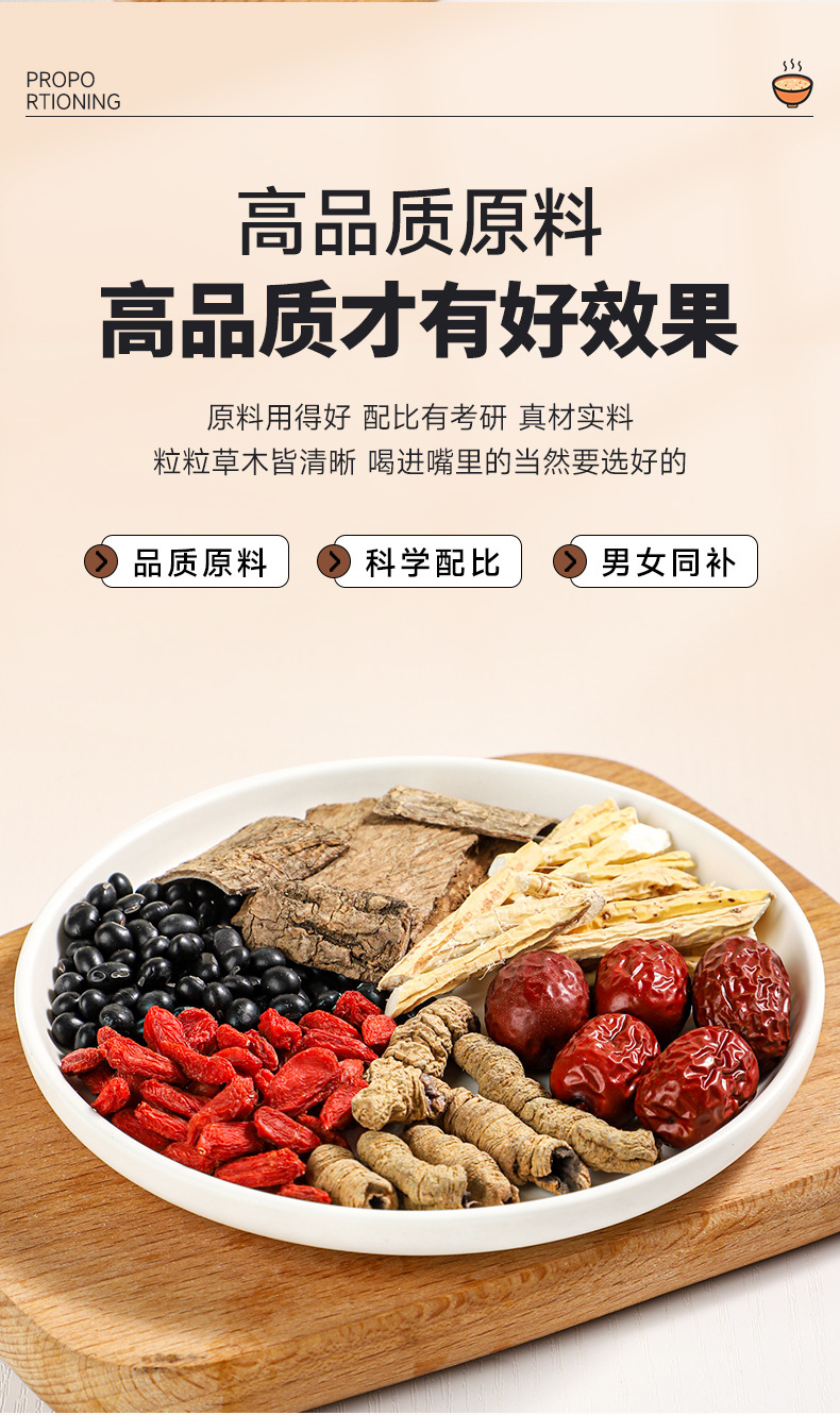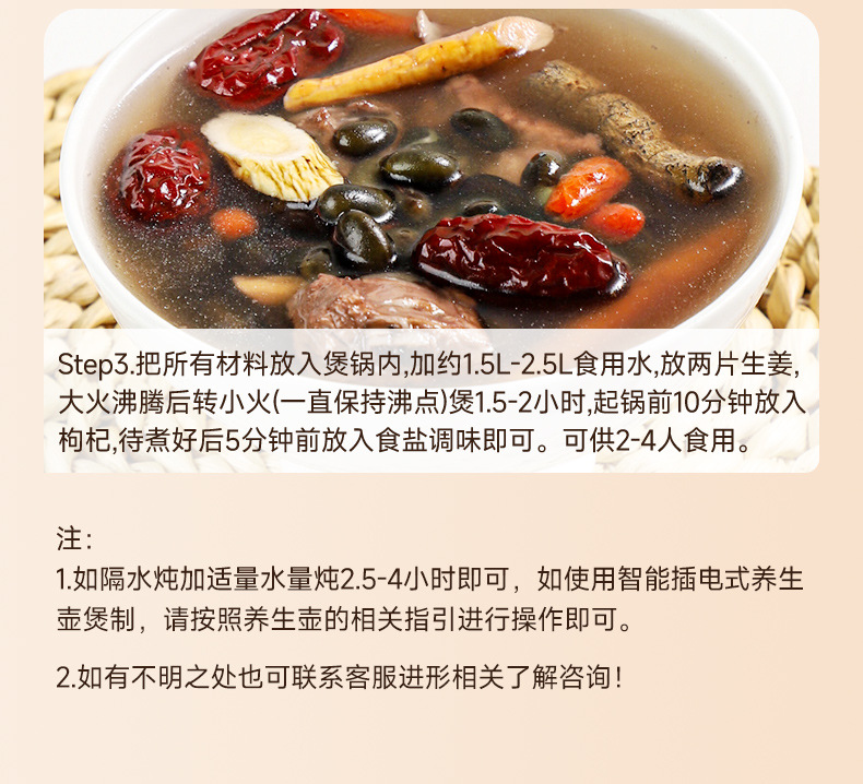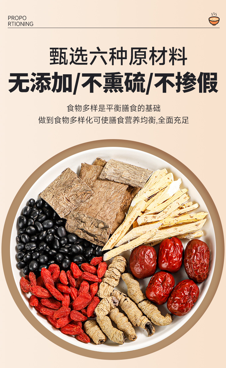 Травяной суп с эвкоммией, мориндой и ягодами годжи, черными бобами и другими ингредиентами для укрепления и тонизирования