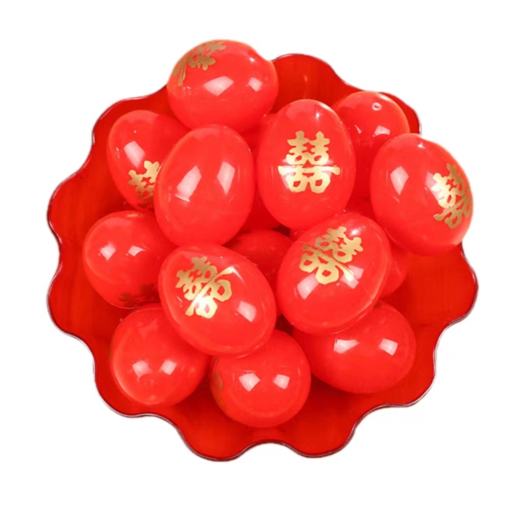 Красная пластиковая скорлупа яйца с символами Си и Фу, свадебные принадлежности для полного месяца, оптовая продажа от фабрики