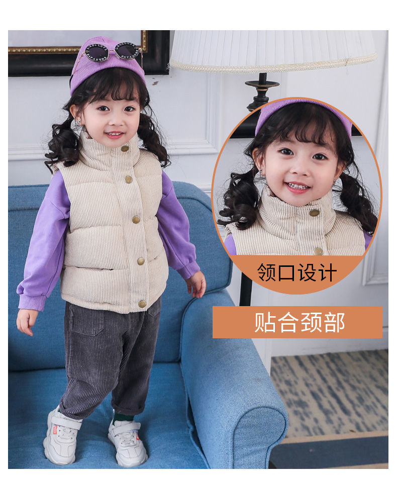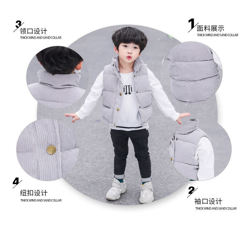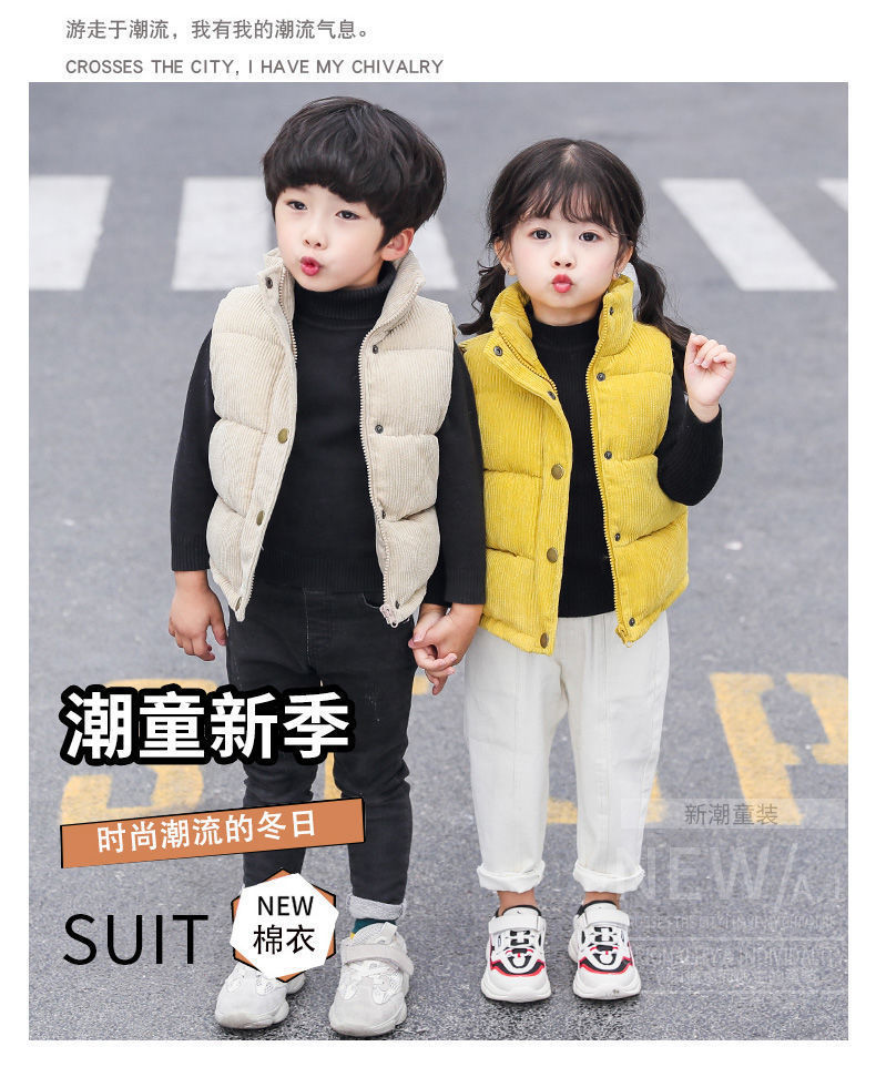 Детский жилет для мальчиков и девочек Утепленный внешний жилет из вельвета Осень и зима Хлопковый жилет