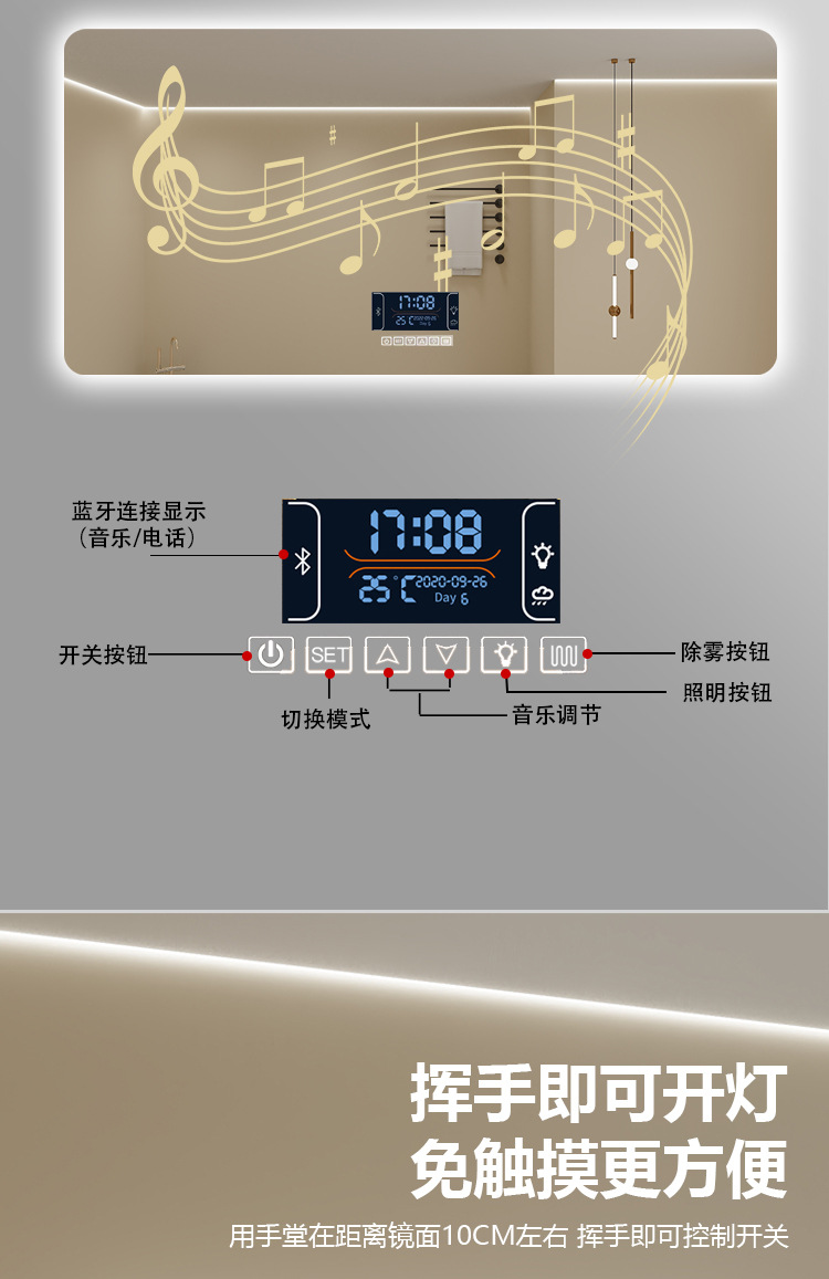 ![]() | [Human body induction] LCD six-key + Bluetooth call + defogging + calendar time temperature | 75*100cm | ¥630.0 / ≈ 7 611 ₽ | 9999 | 5158721273169 | |