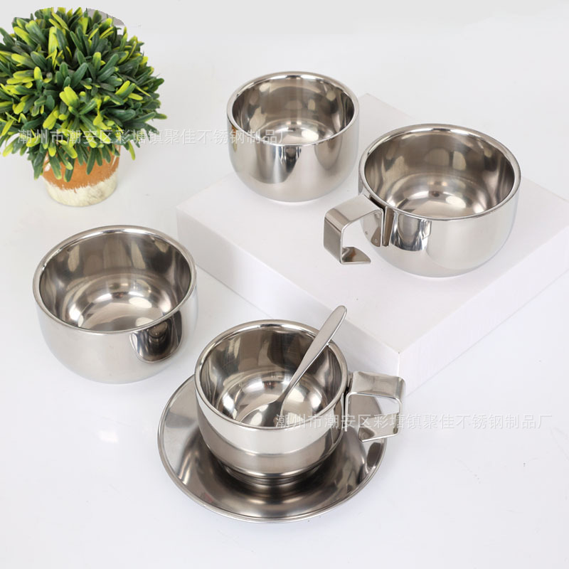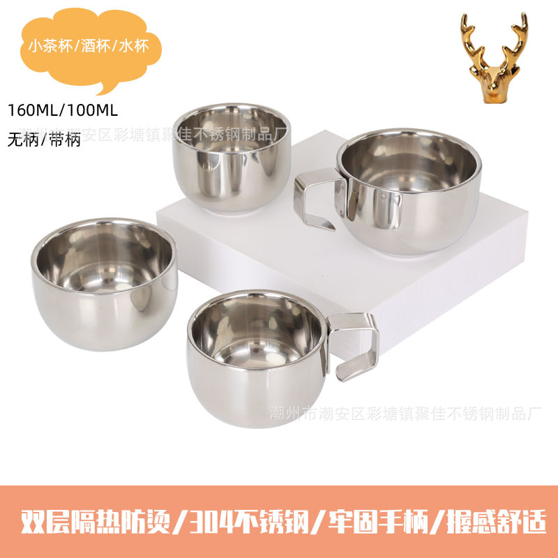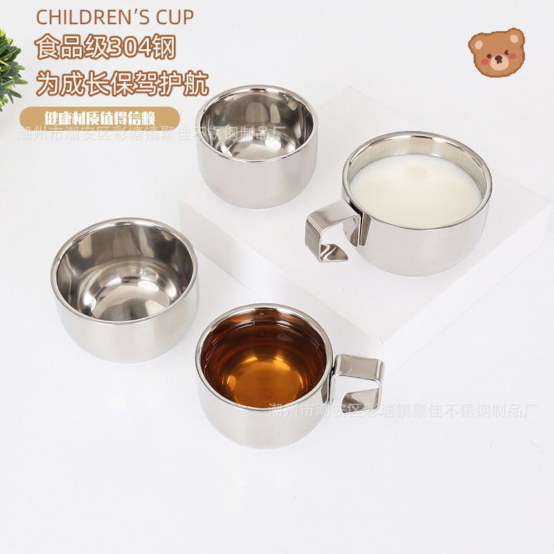 304 нержавеющая сталь, двойная изолированная кружка для кофе с ручкой, 0.15кг, мини милая кружка для детей, обучение питью воды и сушка