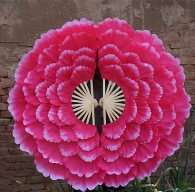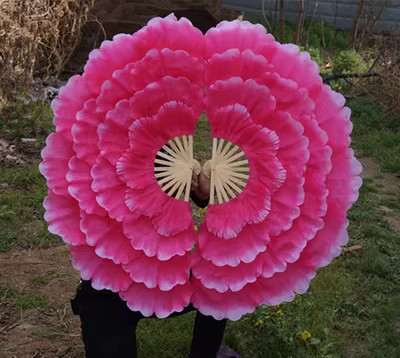 Оптовая пионовая петельная фанера, двусторонний танцевальный веер для взрослых, большой веер с лепестками, квадратный веер для янко