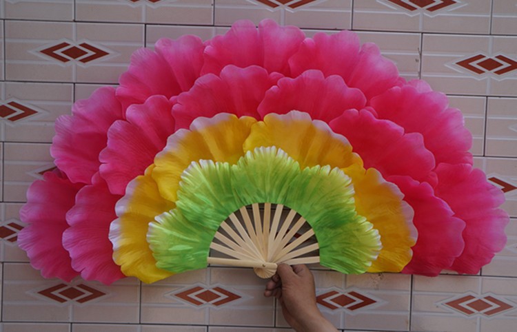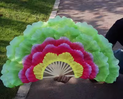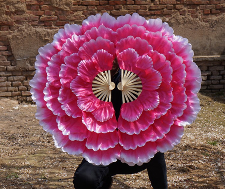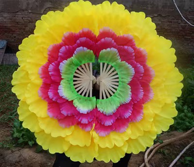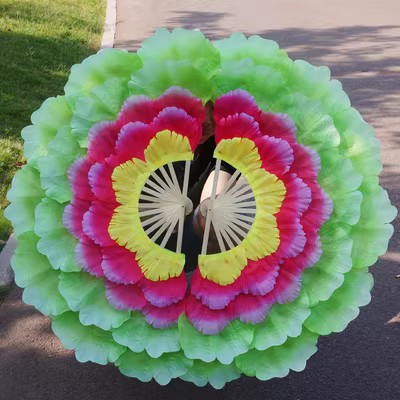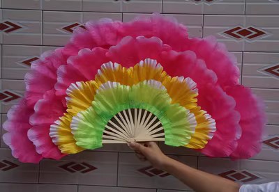 演出效果非常的出彩,现在能像普通扇子一样折合的,但是不能全和哦! 总是孔雀开屏打开的效果。只能合一半,保质量.一把价格要一对拍2把.转扇子锻炼身体很好.舞蹈扇子