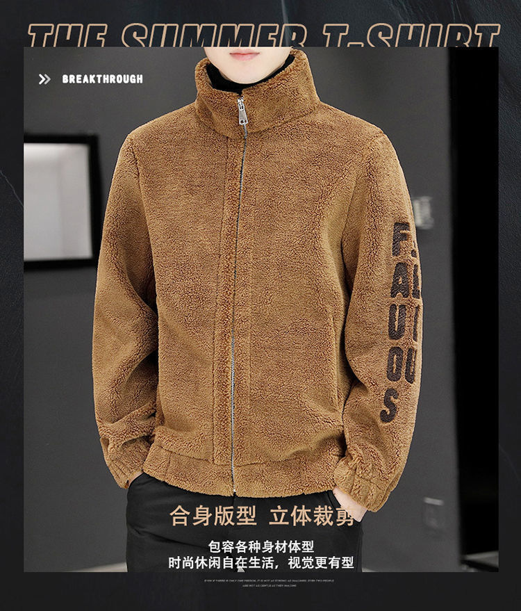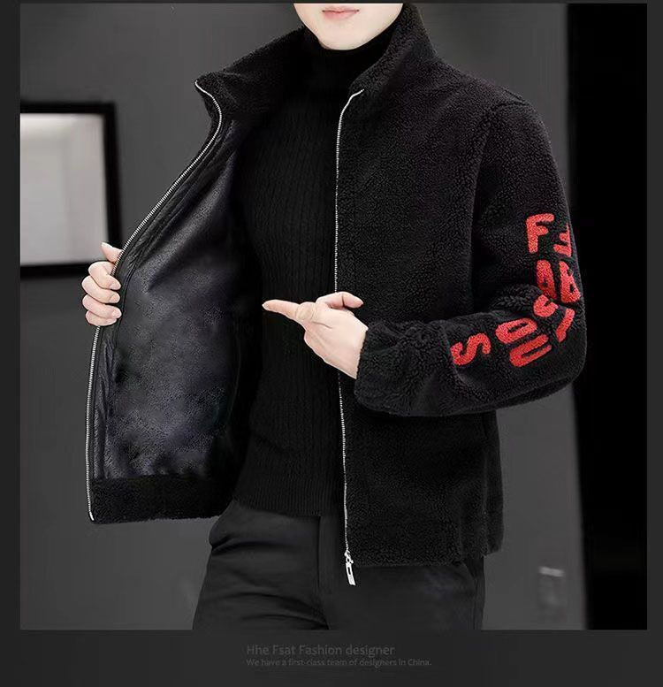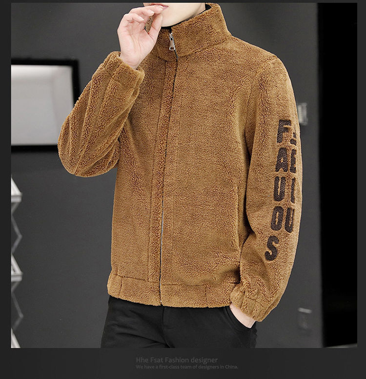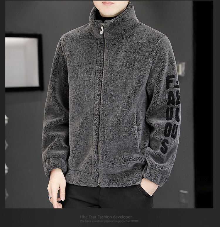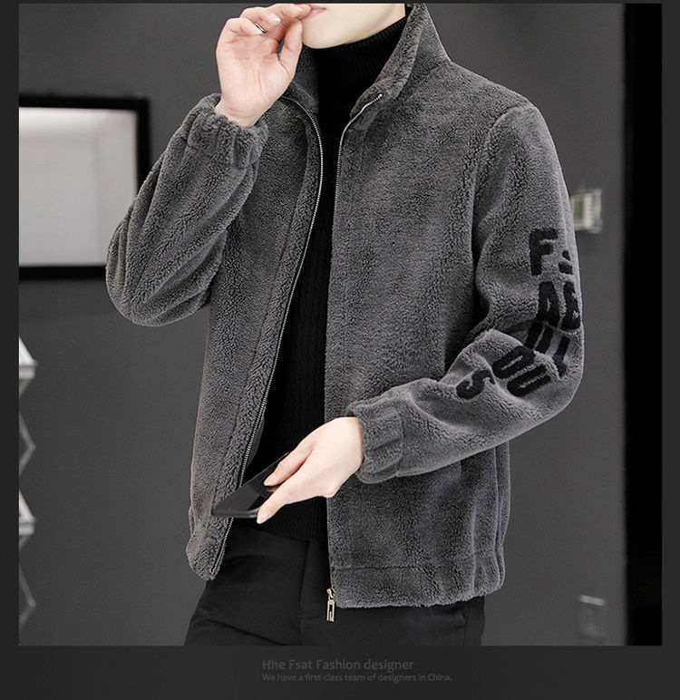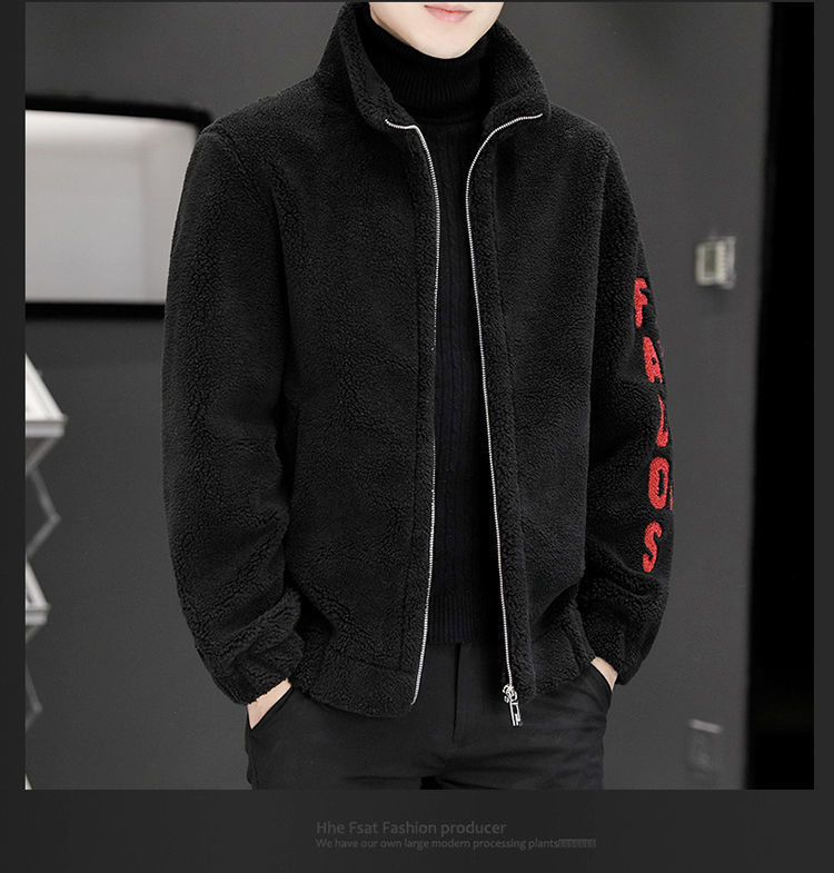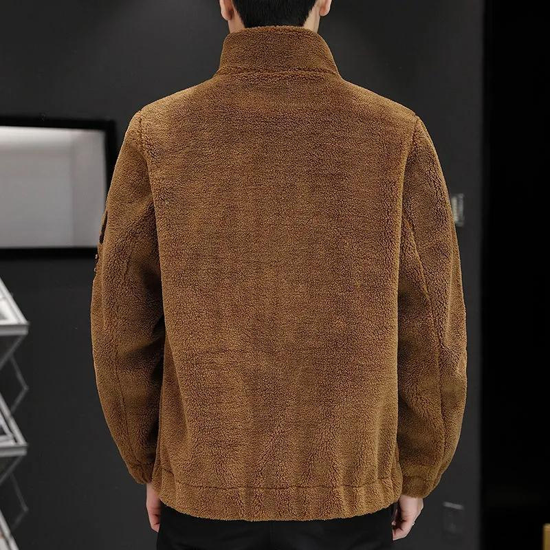 Мужское пальто осенне-зимнее, кашемировая куртка с воротником, свитер с гранулированным флисом, интегрированный с овечьей шерстью