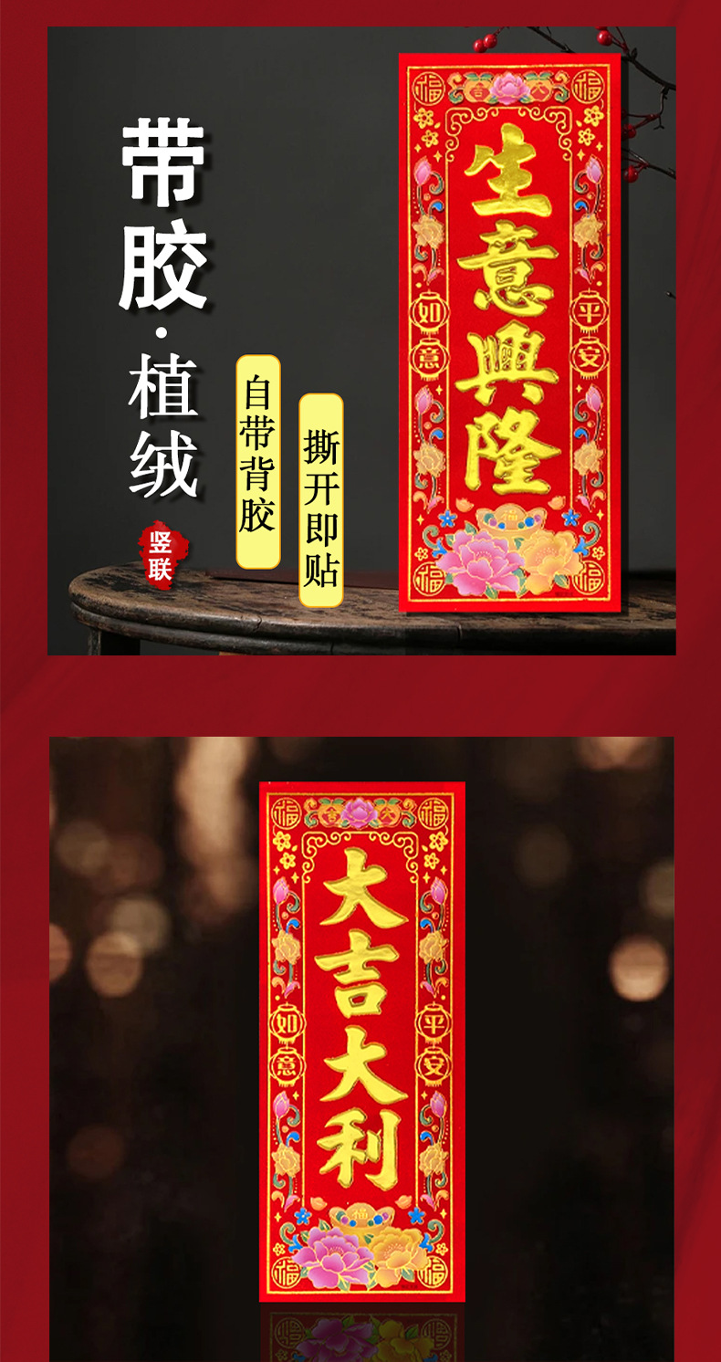 Новый флокированный самоклеящийся золотой фольгированный четырехсимвольный дверной денежный знак к Новому году, оптовая продажа с фабрики Гуандун