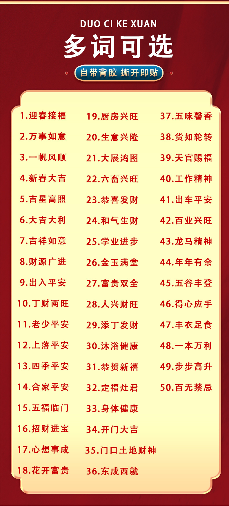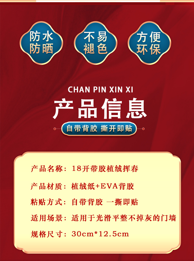 ![]() | 1 Welcome to spring and receive blessing | 20шт: ¥0.27, 2400шт: ¥0.25, 24000шт: ¥0.23 | 60648 | 5296639671902 | |