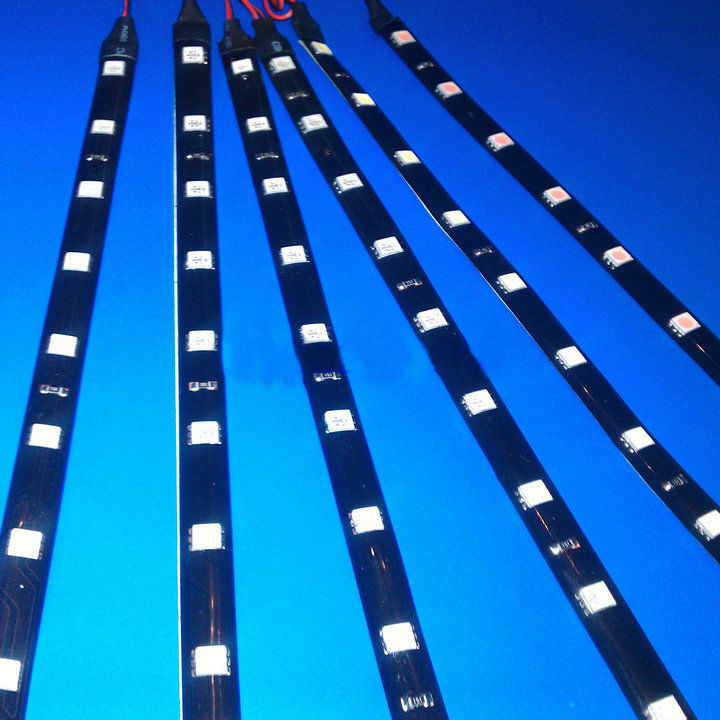型号:5050贴片软条灯30cm12SMD 颜色:白色 蓝色 红色 黄色 绿色 电压:12V 用途:底盘灯、车牌架灯、中网灯、门槛边、门边、仪表台、室内装饰灯、车内坐位下、车顶灯、高位刹车灯等。 |