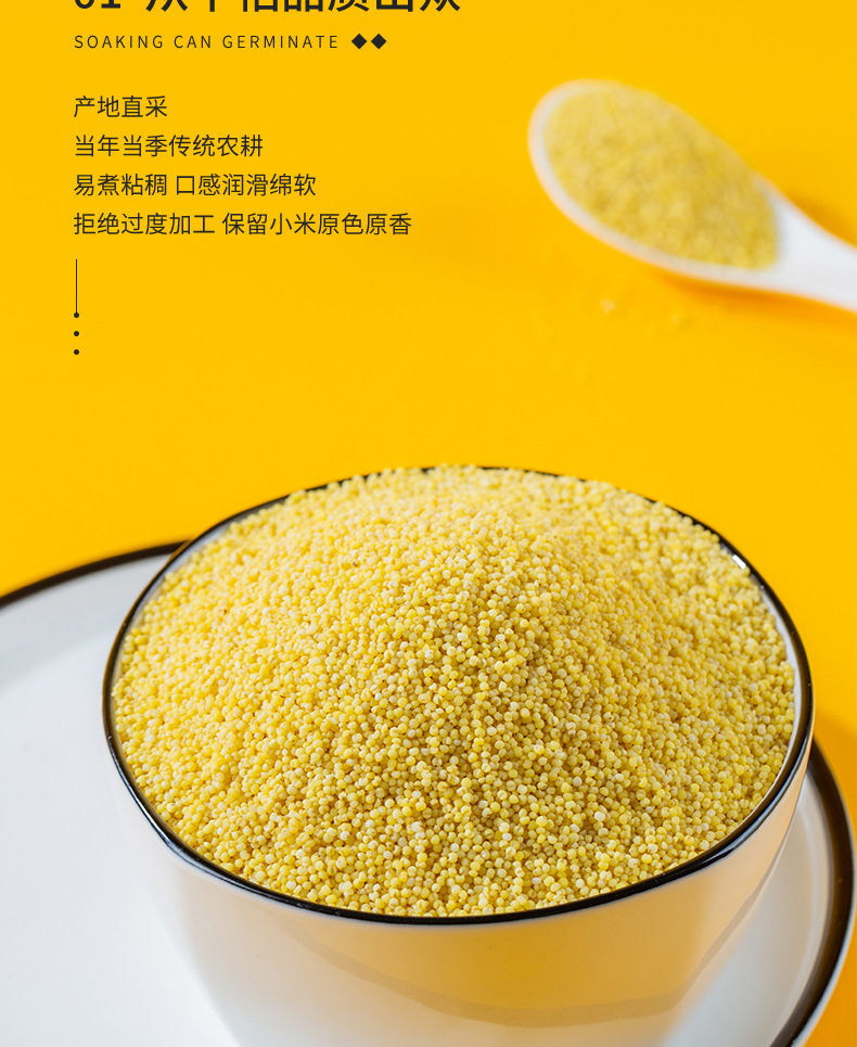 Желтая просо нового урожая Чэн Шанкоу, деревенский мелкий желтый рис, цельнозерновая каша, съедобная просо, рисовая каша