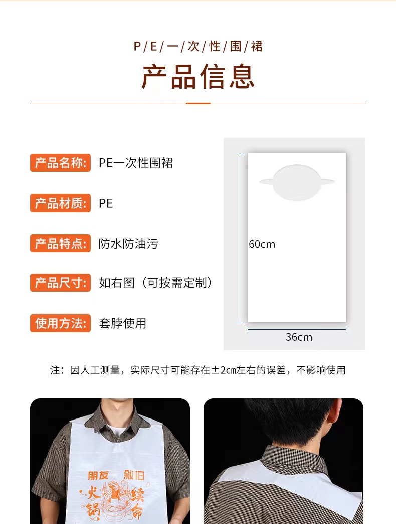 Одноразовый фартук для кейтеринга, пластиковый, ПЭ, водонепроницаемый, прозрачный, для лобстера, с маслостойким независимым упаковкой