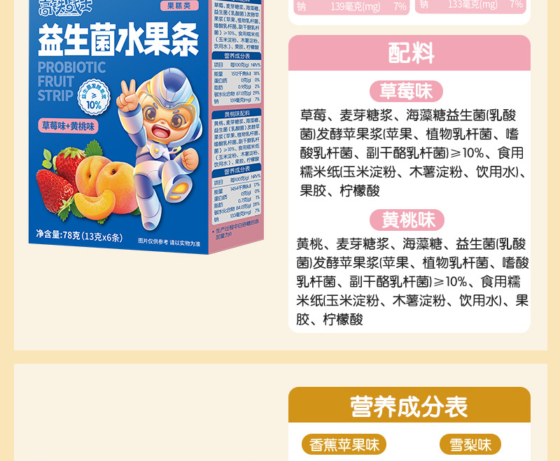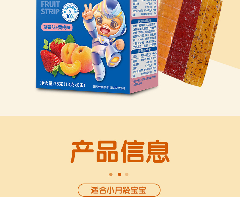 Фрукты-грибы в полосках, 13Г * 6, детские закуски без белого сахара
