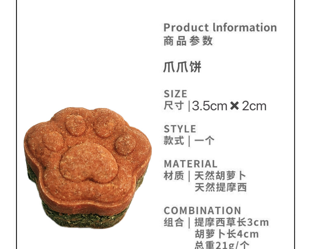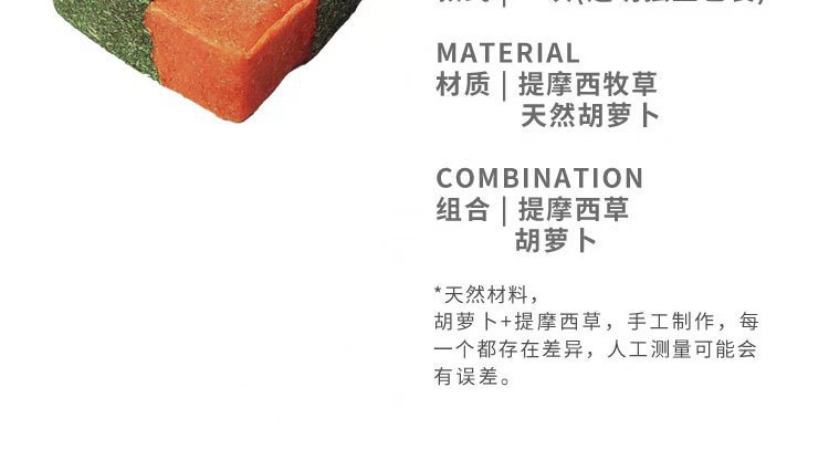 原料:提摩西草粉 胡萝卜粉 苹果木枝