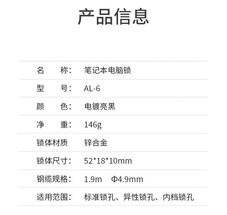Характеристики продукта Notebook anti-theft lock