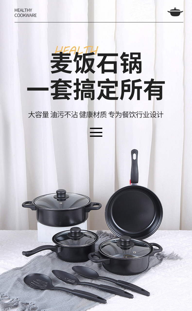 Кросс-бордерный медицинский каменный набор кастрюль для домашнего использования с меньшим количеством дымов, индукционная плита, антипригарные кастрюли, набор кухонных принадлежностей