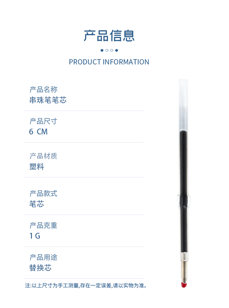 Запасной стержень для шариковой ручки 1.0мм пластиковый с бисером универсальный для офиса