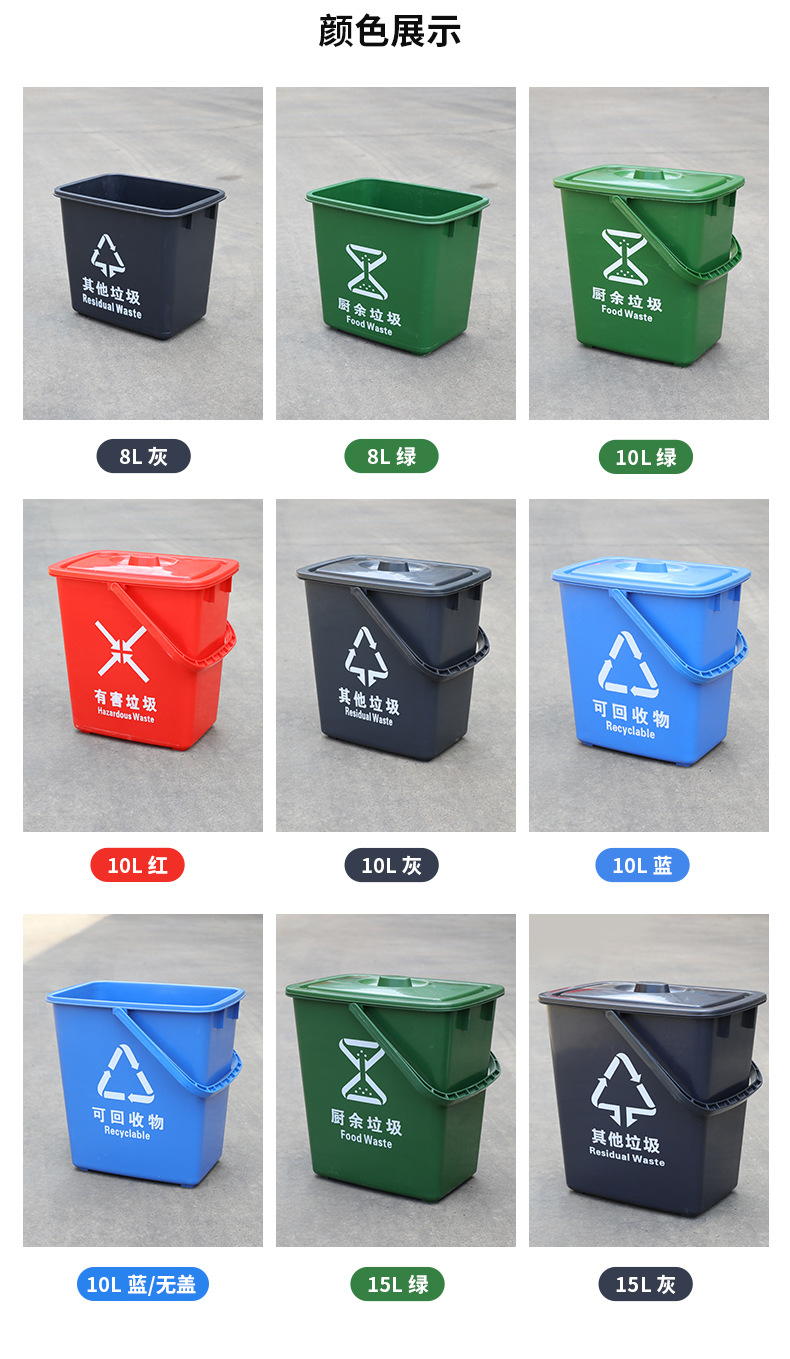 Мусорное ведро с ручкой 8L10L15L для офиса и кухни с крышкой