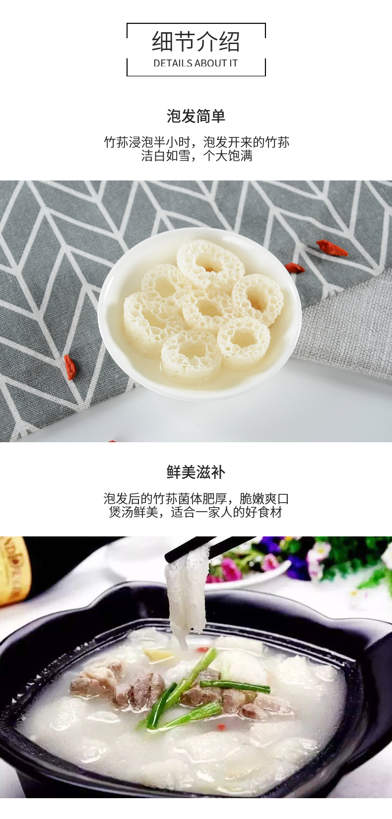 Сушеные грибы бамбукового гриба, ингредиенты для супа без дыма, экологически чистые съедобные грибы