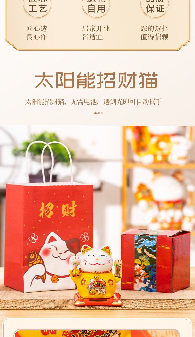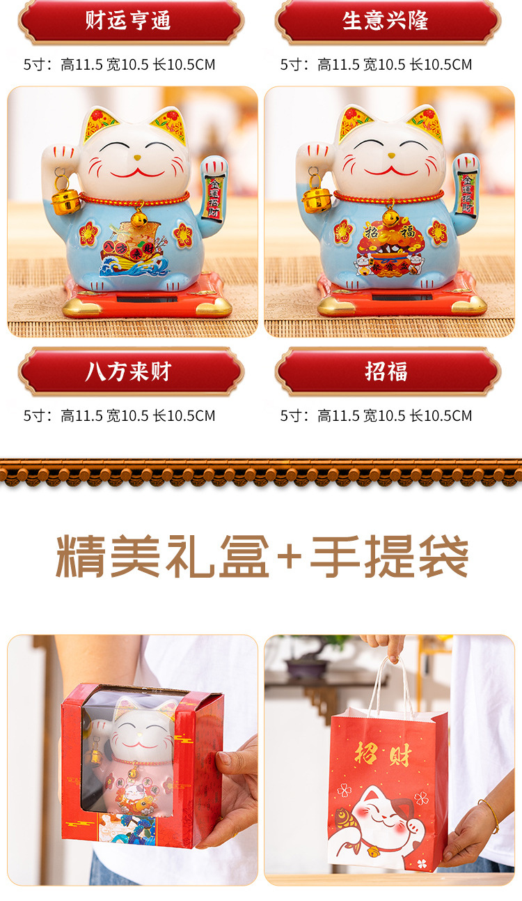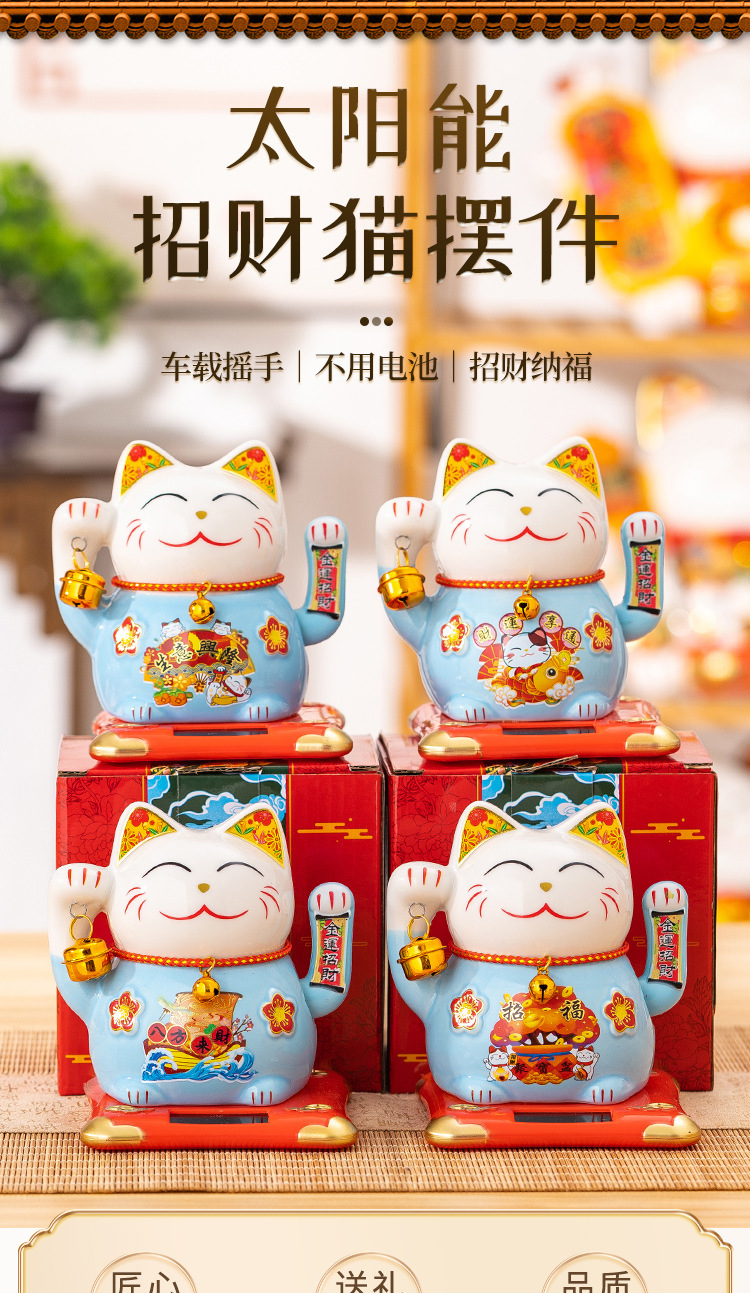 Оптовая продажа керамического солнечного кота удачи, автоматическая ручная подарочная коробка, подарок на ежегодную встречу, ручной подарок
