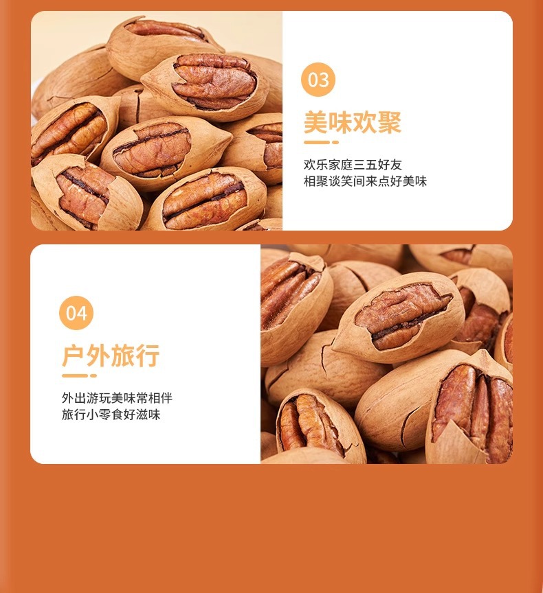 Кремовые орехи пекан и сухофрукты, новогодние товары, жареные семена и орехи, консервированные орехи долголетия