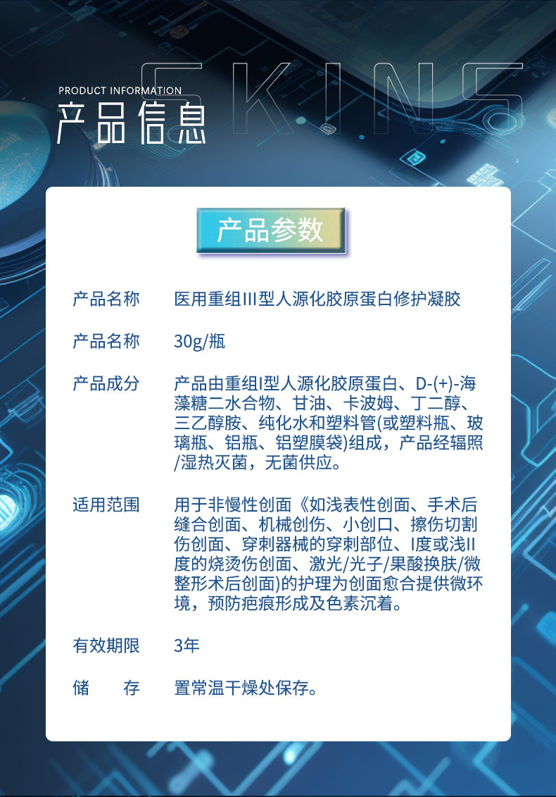 Номер товара Medical recombinant type iii protein repair gel (press bottle)
